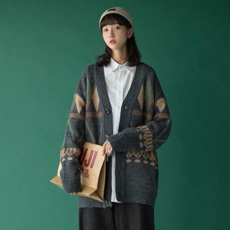 ニットカーディガン ニットカーディガン ロング ユニセックス メンズ ペア カーディガン 秋冬 トップス ニット 長袖 配色 チェック柄 チェック柄