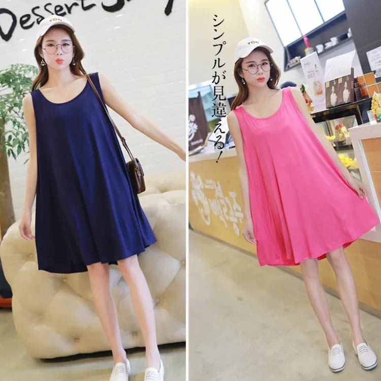 接触冷感 タンクトップ ワンピース レディース 夏 薄手 Aライン ロングタンクトップ ノースリーブ トップス 大きいサイズ インナー レイヤード ラウンドネック 揺れる おしゃれ シンプル 無地 ゆったり 部屋着 ルームウエア 涼しい 体型カバー 送料無料 L-3XL