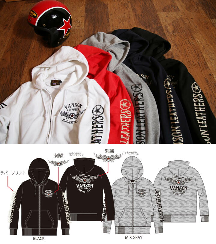 マラソン期間中!使えるクーポン発行中★当店別注!VANSON バンソン 定番ウィング フルジップパーカー ACVA-904 スタンダードサイズ