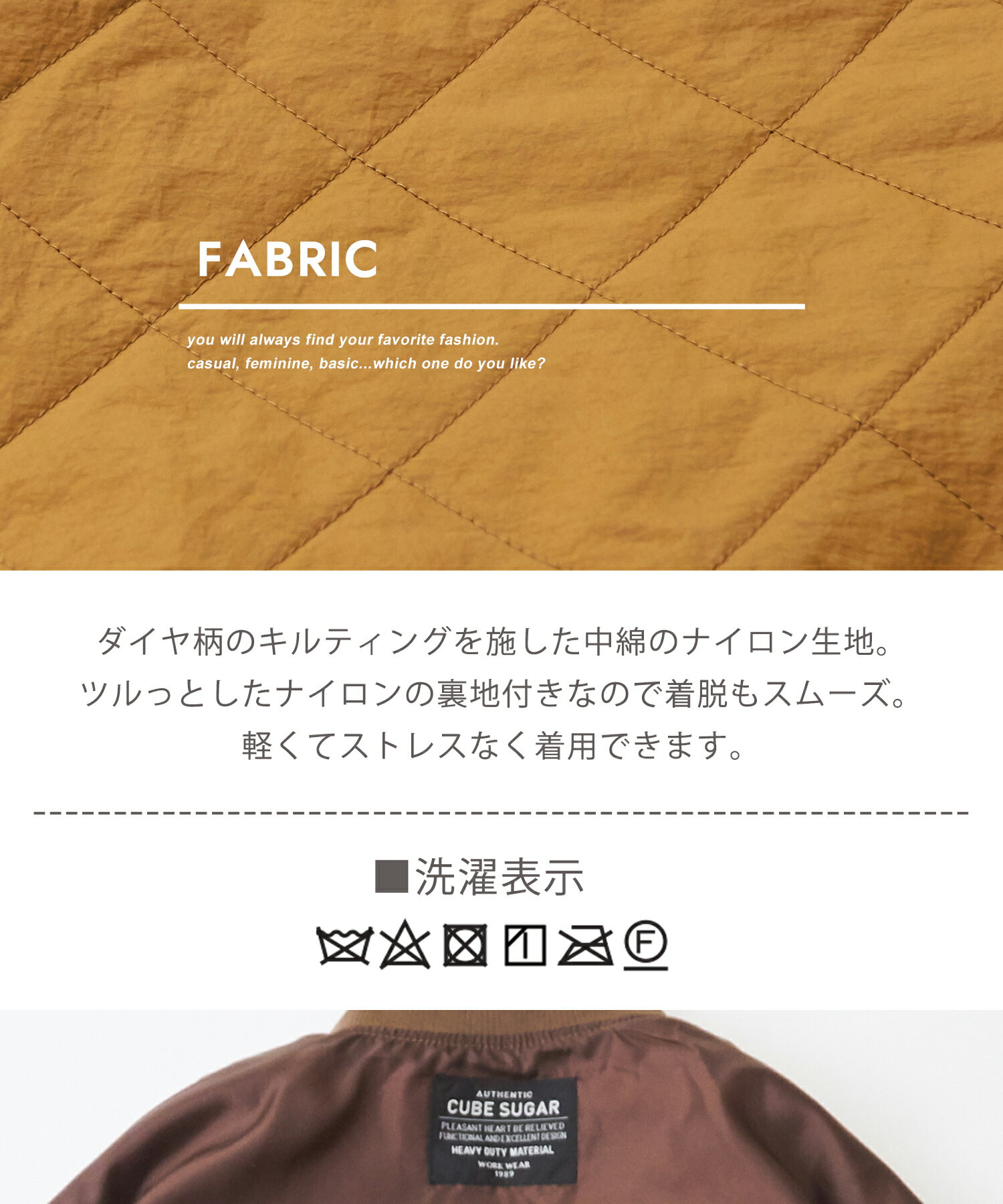 【楽天スーパーSALE★20%OFF】キルティングアウター / 公式 CUBE SUGAR ナイロン 中綿 キルト ジップアップ ブルゾン(4色): アメカジ レディース アウター ジャケット キルティング ファスナー 中綿 羽織 ミリタリー カジュアル キューブシュガー