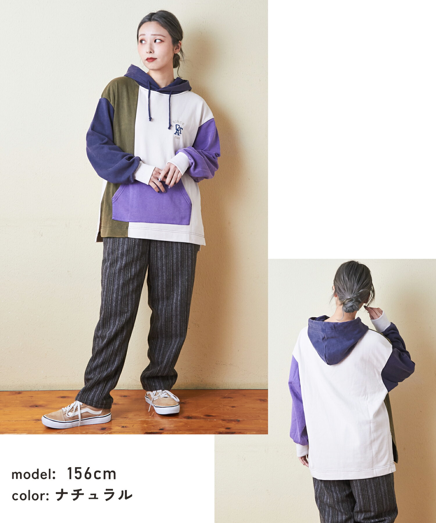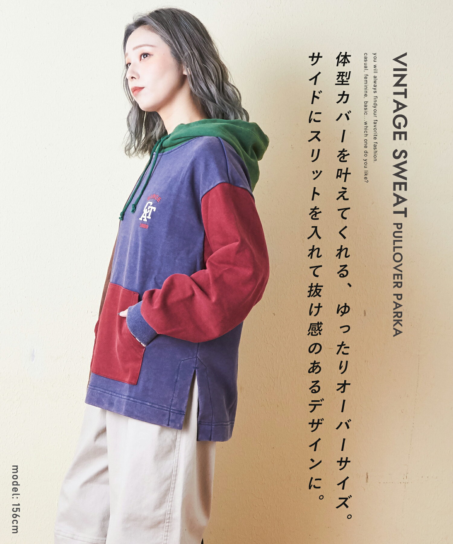 フーディ / 公式 CUBE SUGAR パウダー加工 スウェット プルオーバーパーカー(3色): アメカジ レディース トップス トレーナー フード パーカー 長袖 配色 カジュアル キューブシュガー