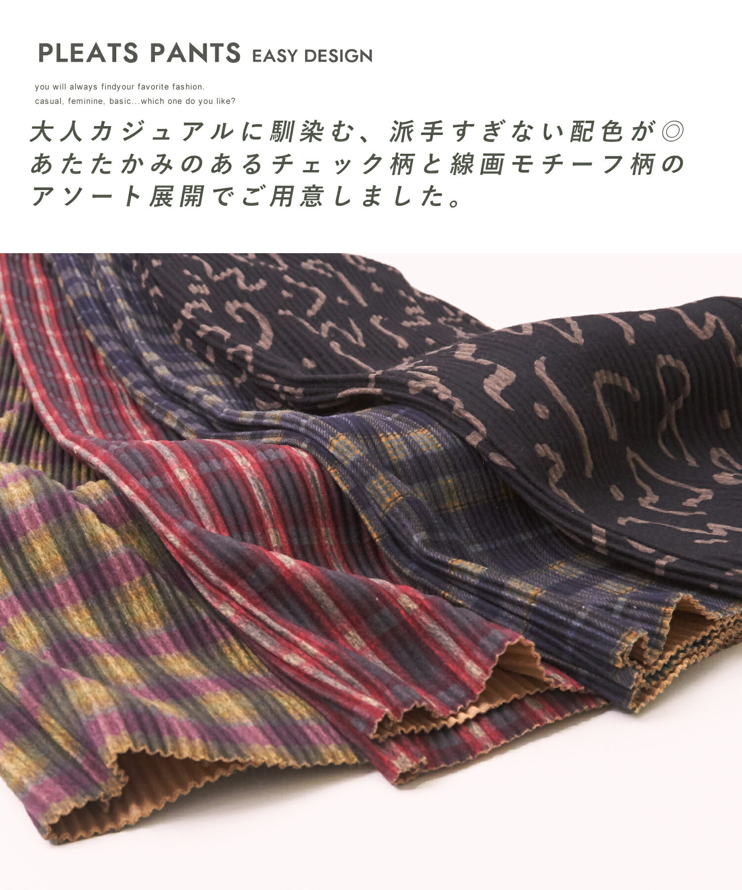 【大感謝祭!冬SALE★10%OFF】プリーツパンツ / 公式 CUBE SUGAR 総柄 プリント イージー プリーツパンツ(4色): アメカジ レディース ボトムス ズボン パンツ イージーパンツ フレアパンツ ウエストゴム チェック柄 カジュアル キューブシュガー