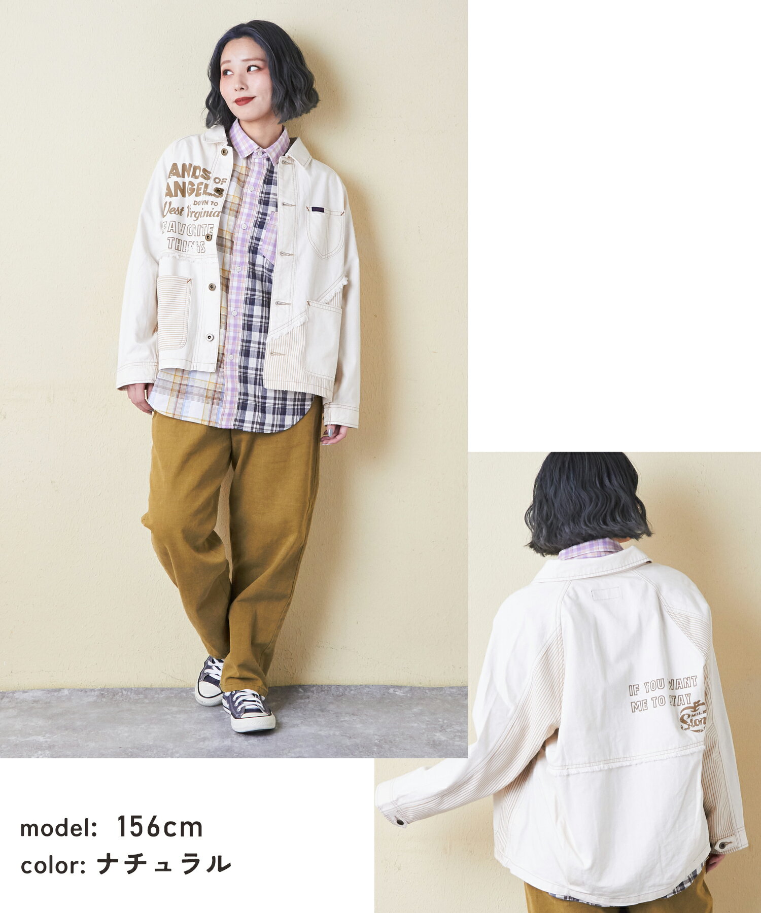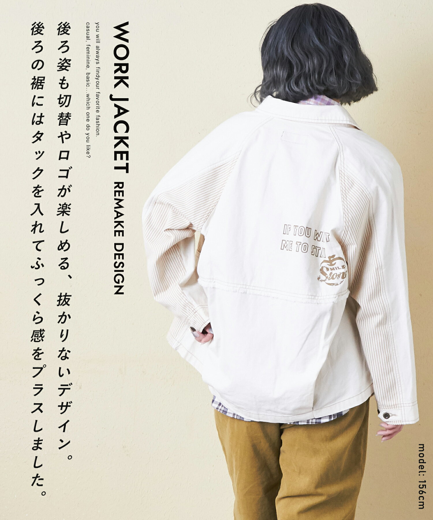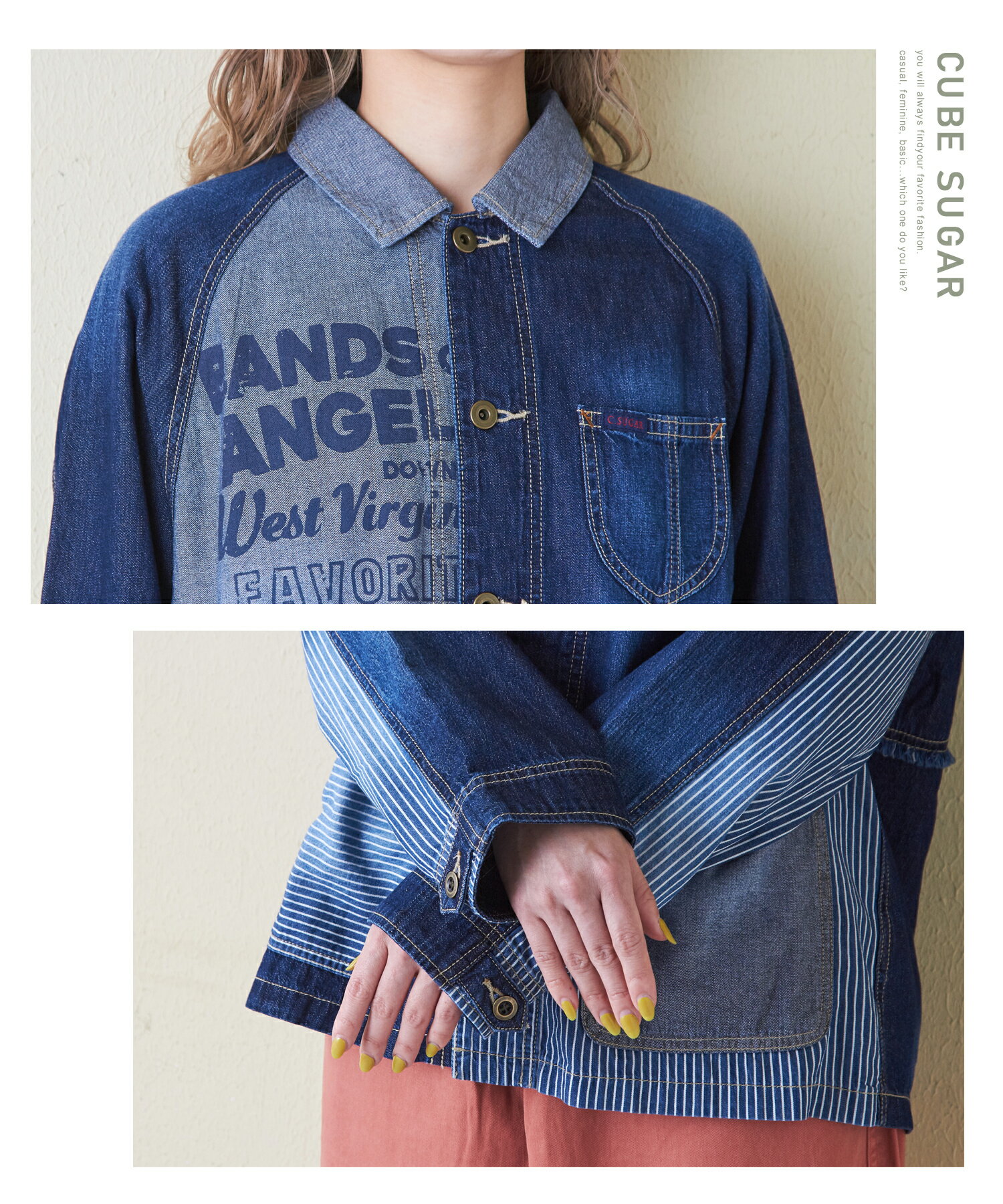 【お買い物マラソン限定★20%OFF】【春新作】ジャケット / 公式 CUBE SUGAR ヒッコリー 切替 後裾タック ワークジャケット ( ツイル / 6.5オンスデニム )(3色): アメカジ レディース トップス 羽織 カバーオール ジャケット Gジャン ロゴ カジュアル キューブシュガー