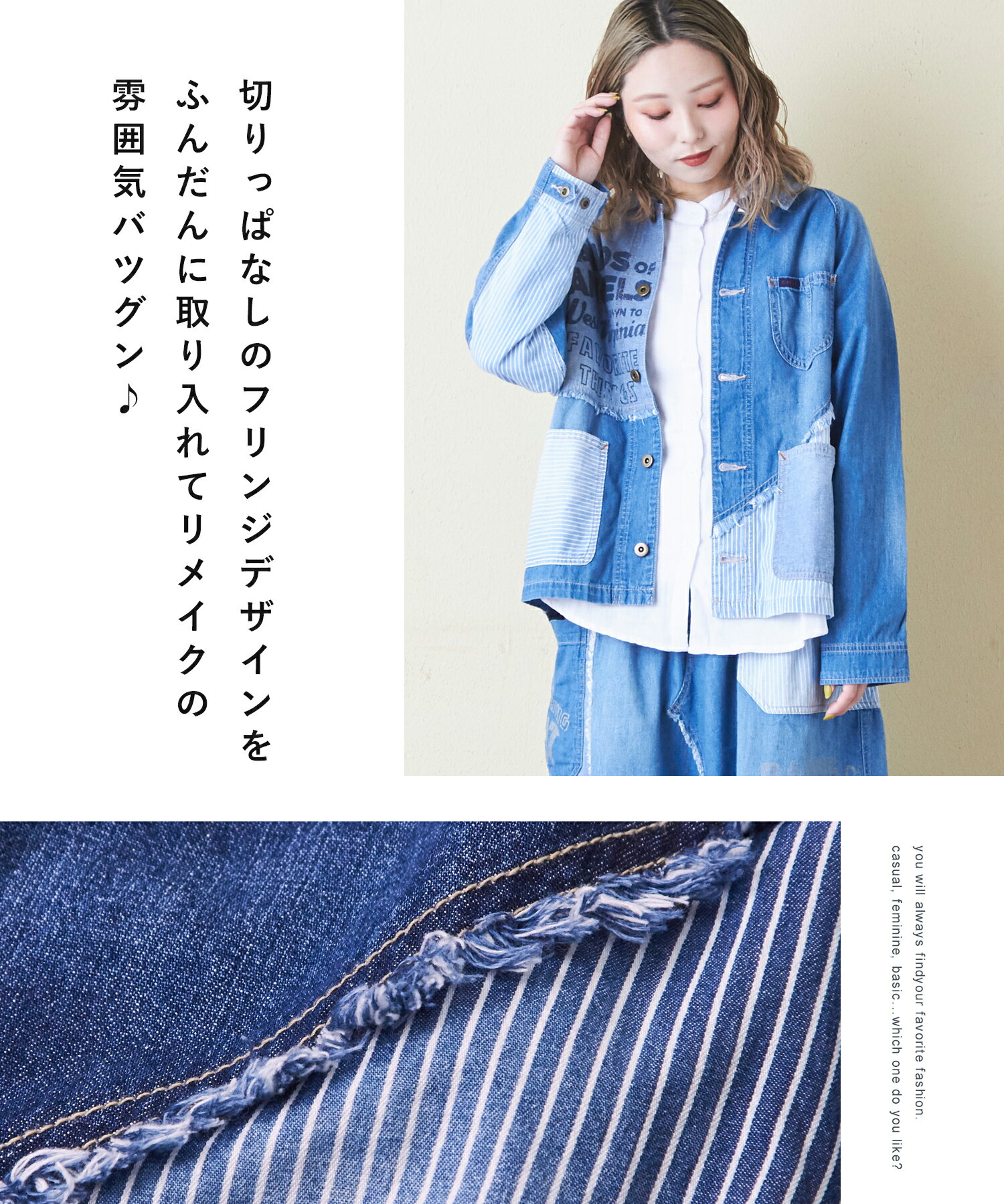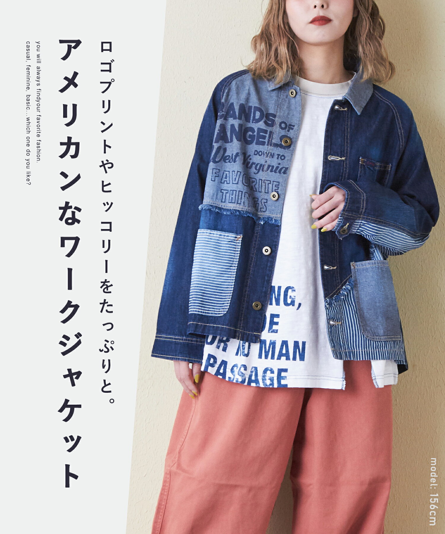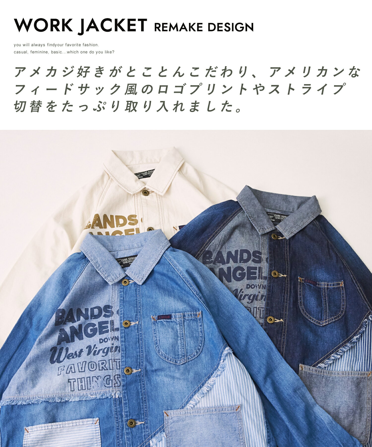 【お買い物マラソン限定★20%OFF】【春新作】ジャケット / 公式 CUBE SUGAR ヒッコリー 切替 後裾タック ワークジャケット ( ツイル / 6.5オンスデニム )(3色): アメカジ レディース トップス 羽織 カバーオール ジャケット Gジャン ロゴ カジュアル キューブシュガー