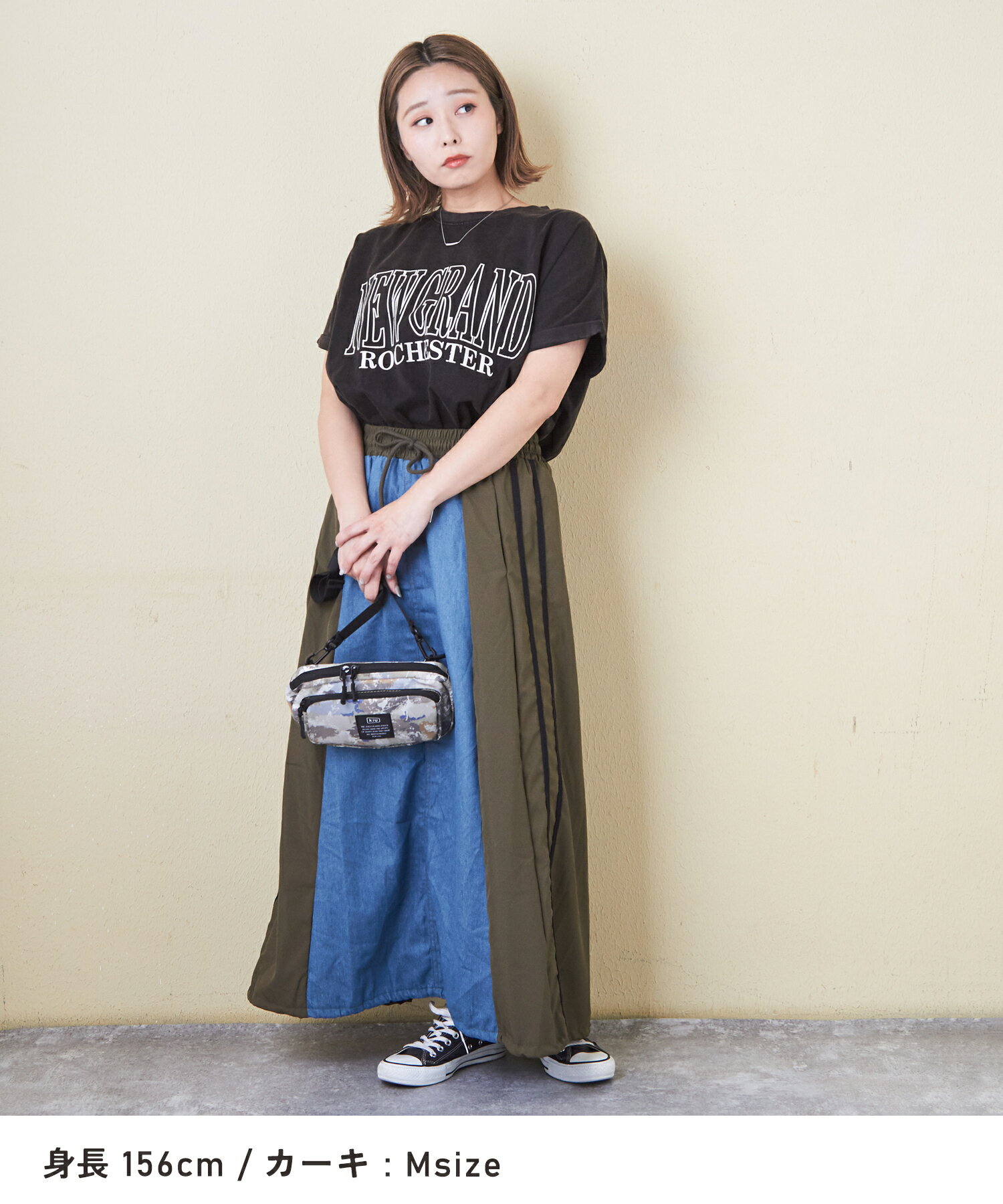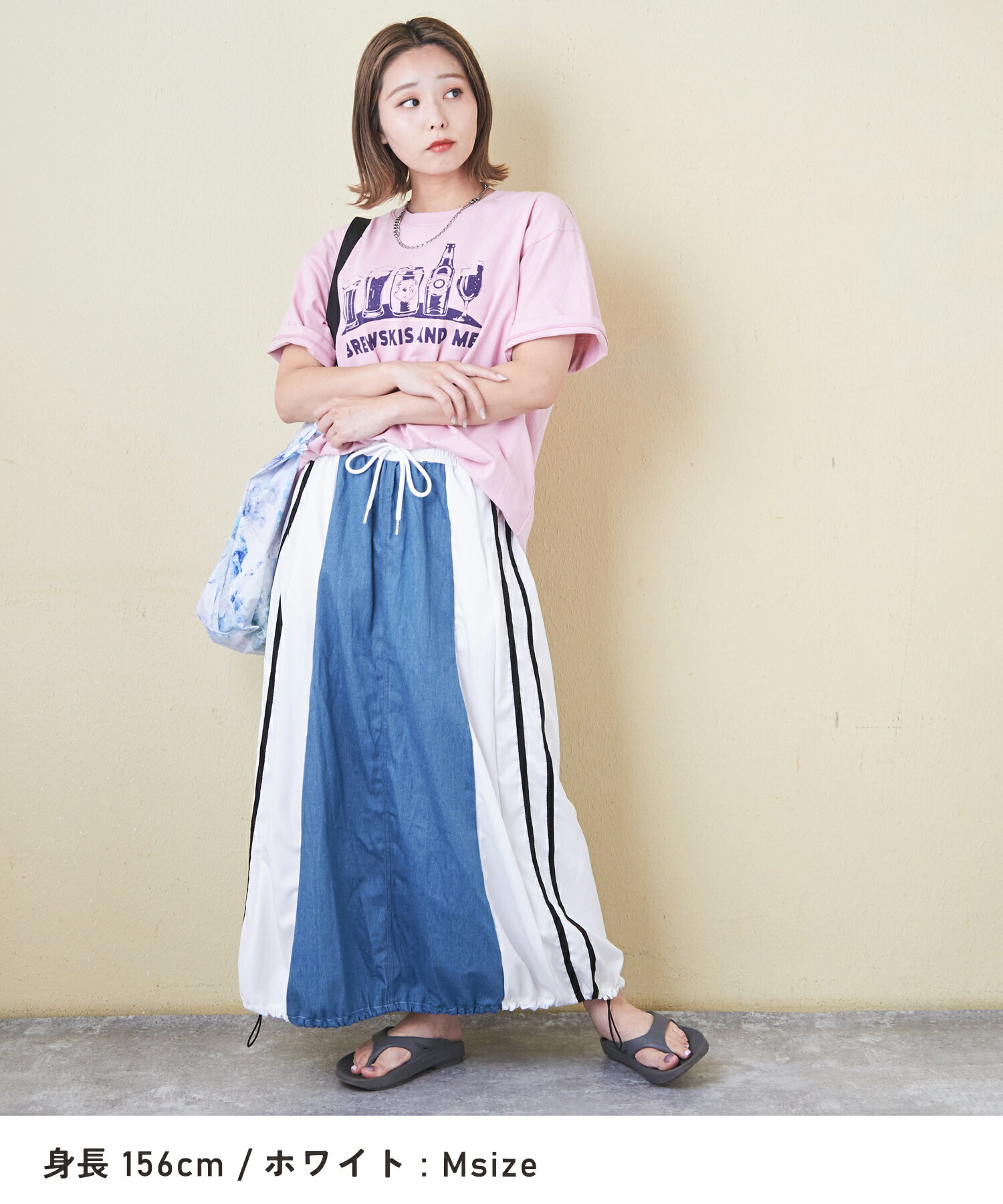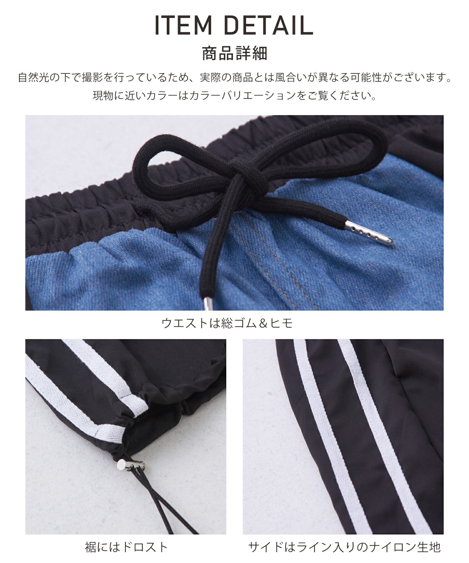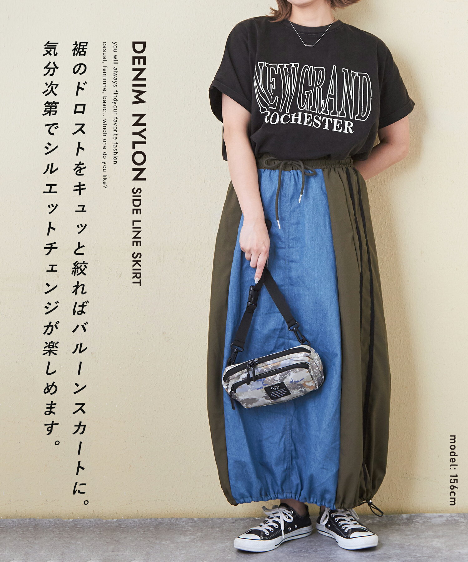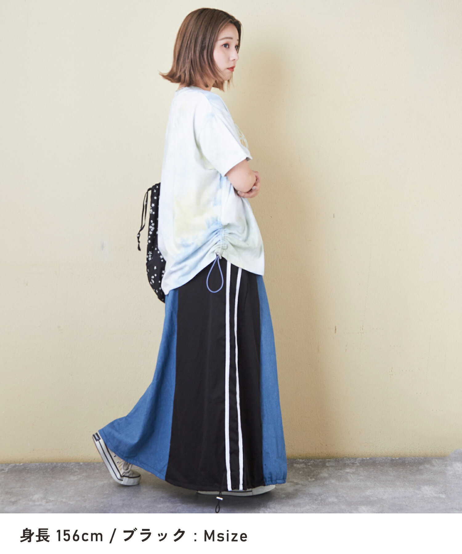 【17周年記念SALE★10%OFF】【夏新作】デニムスカート / 公式 CUBE SUGAR デニム × ナイロン サイドライン 切替 スカート (3色): アメカジ レディース ボトムス スカート ロングスカート ライン入り ロング丈 ウエストゴム フレア カジュアル キューブシュガー