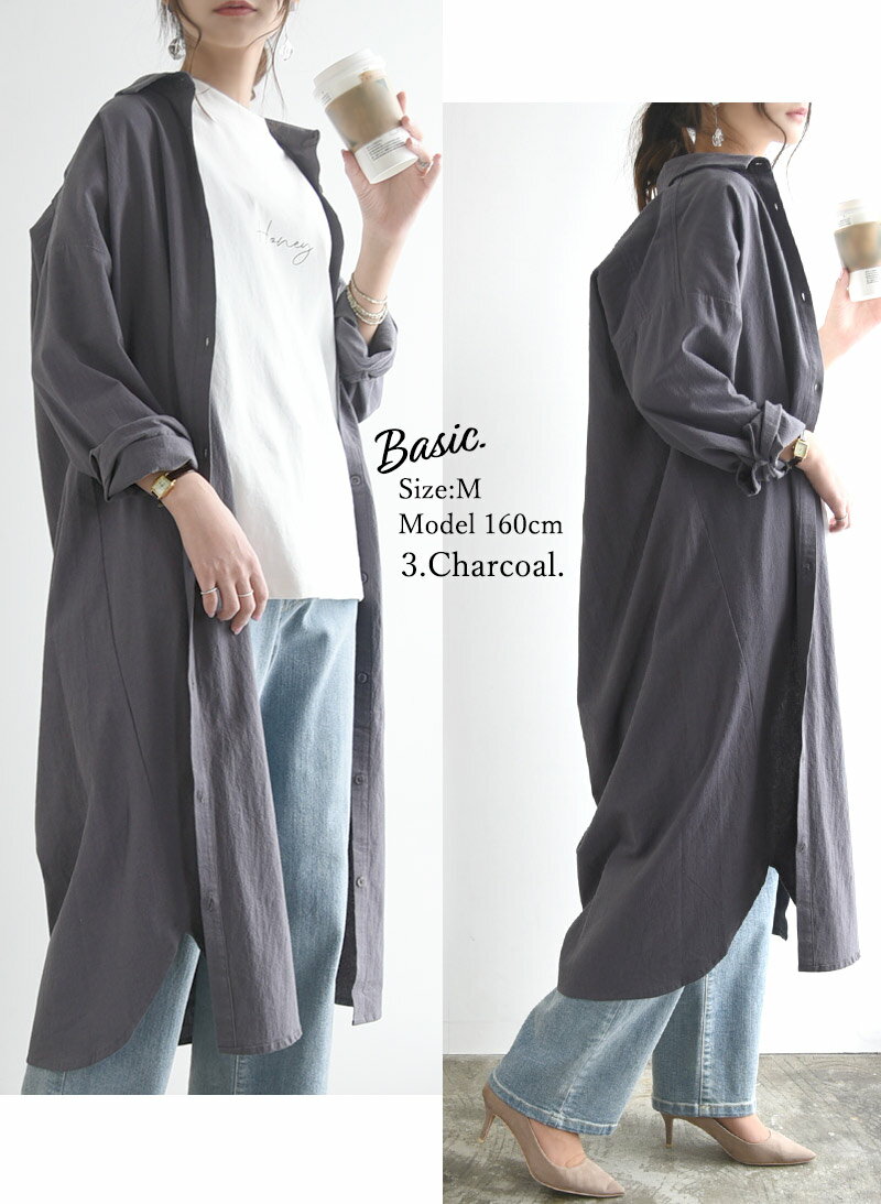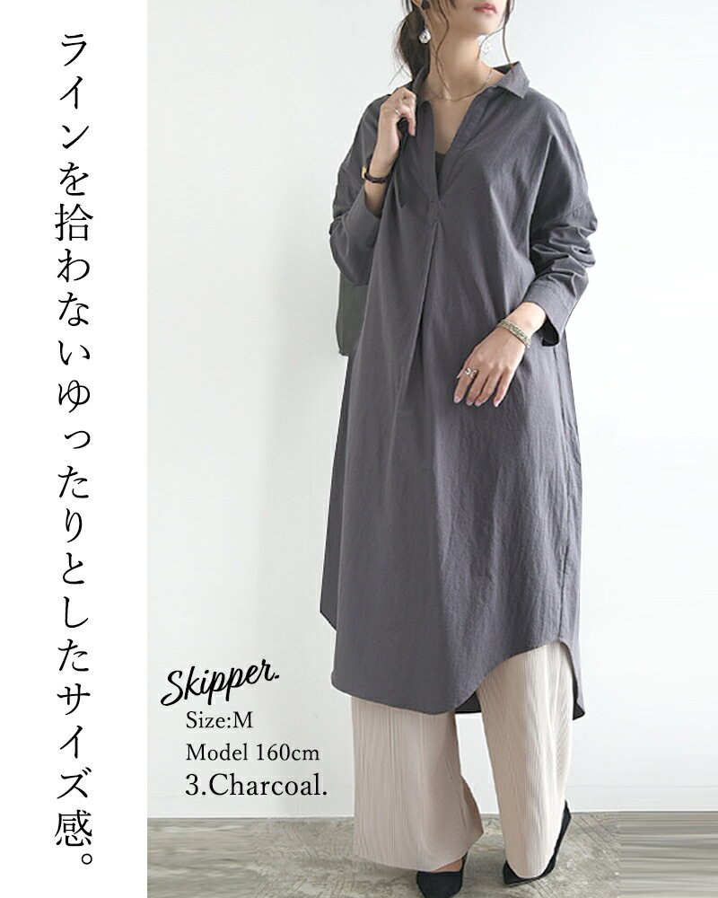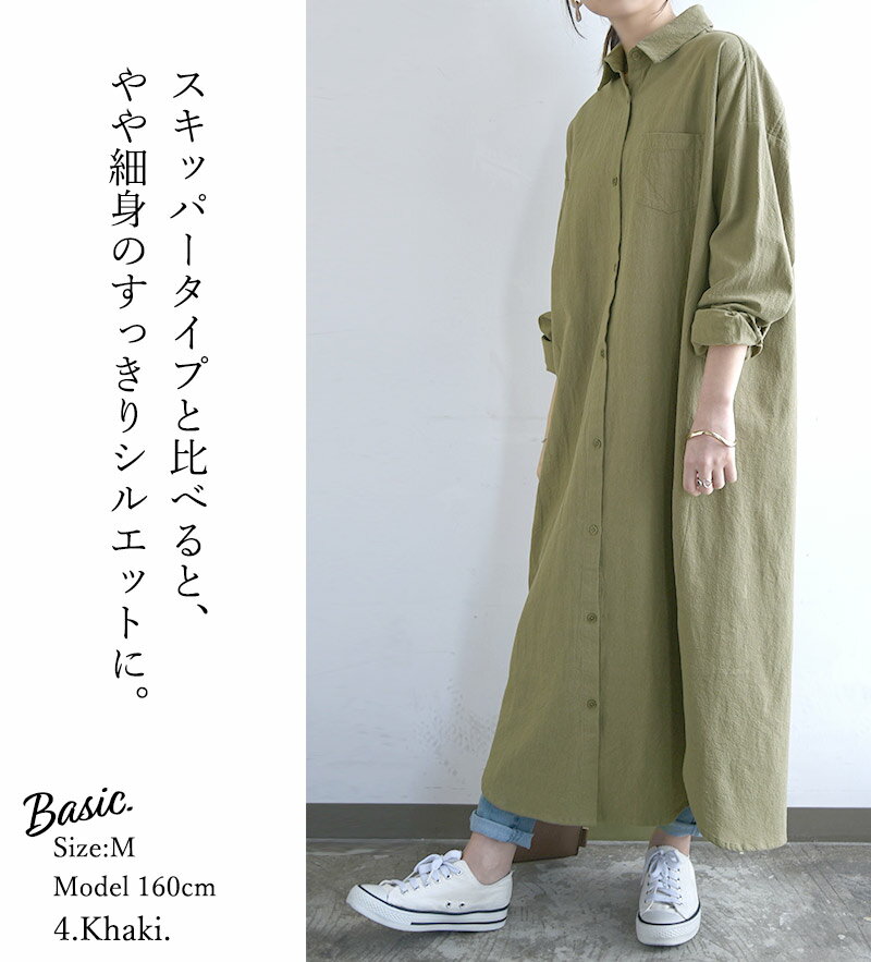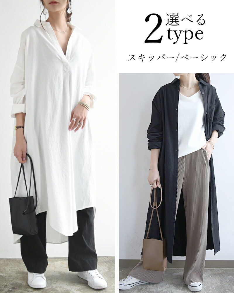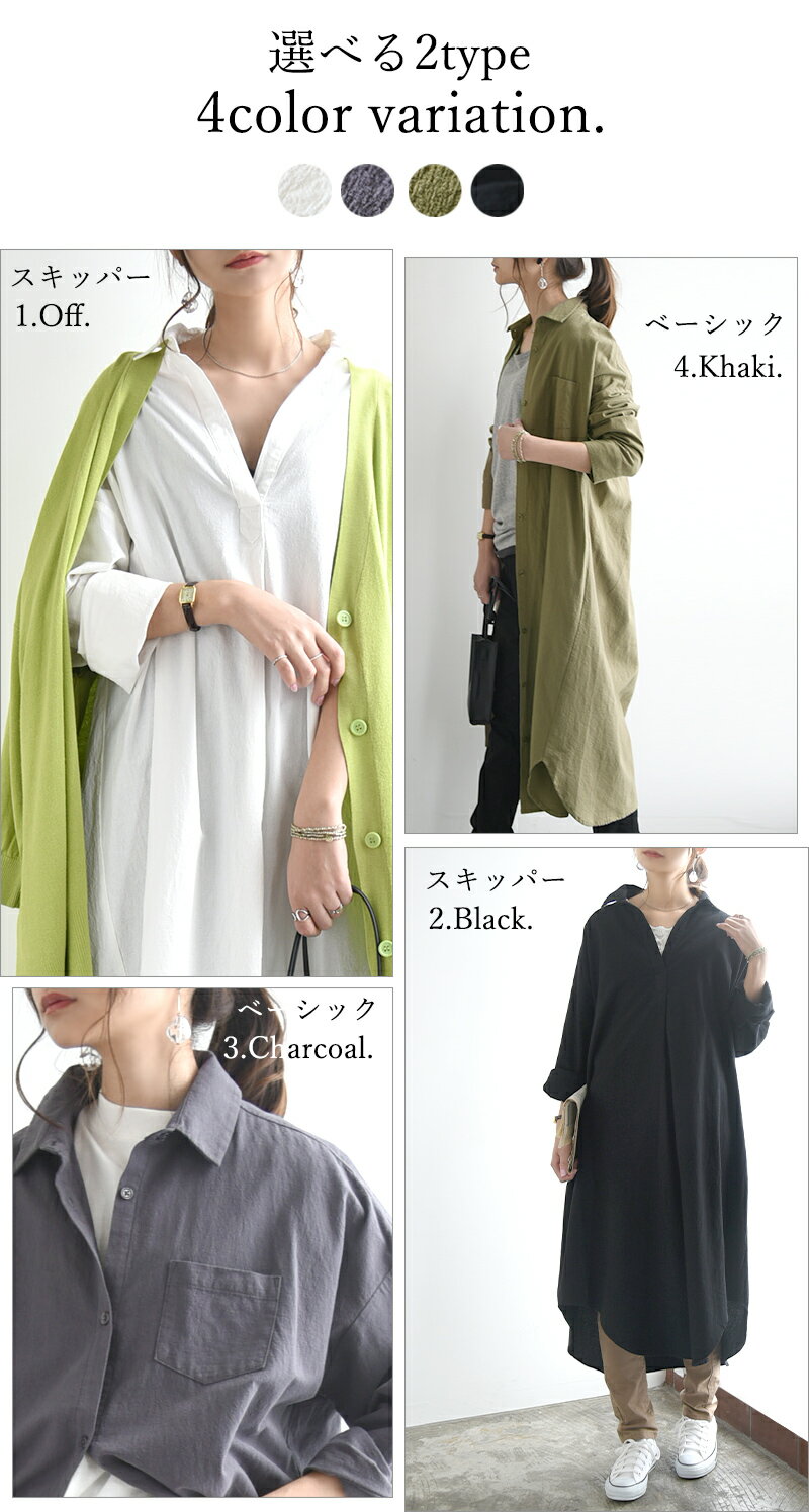 シャツワンピ ワンピース レディース 春 長袖 選べる2type!スキッパー&ベーシック 長袖ロングシャツワンピース 黒 ワンピ スキッパー シャツ 綿100% コットン100% 羽織り 無地 M L メール便10