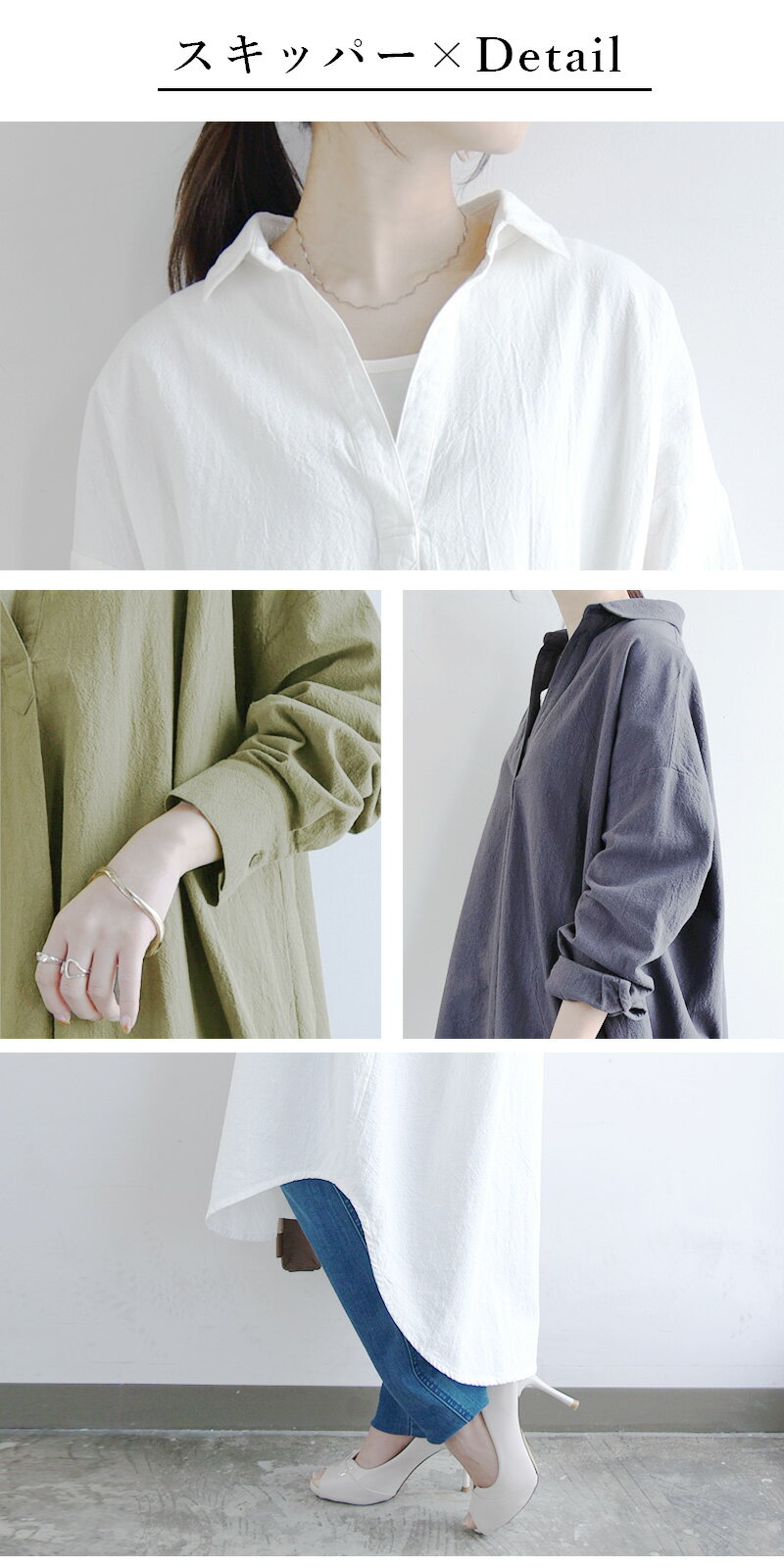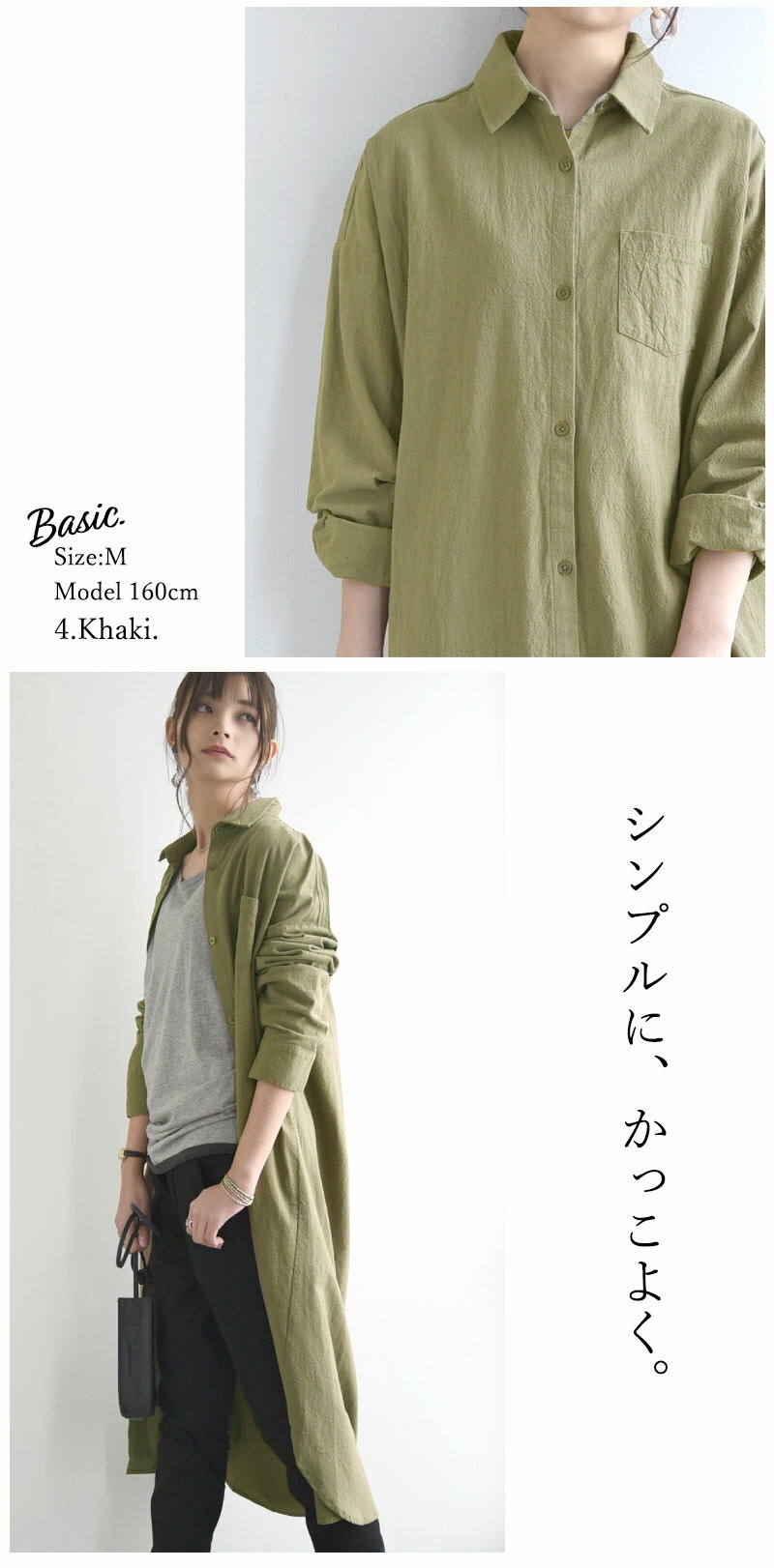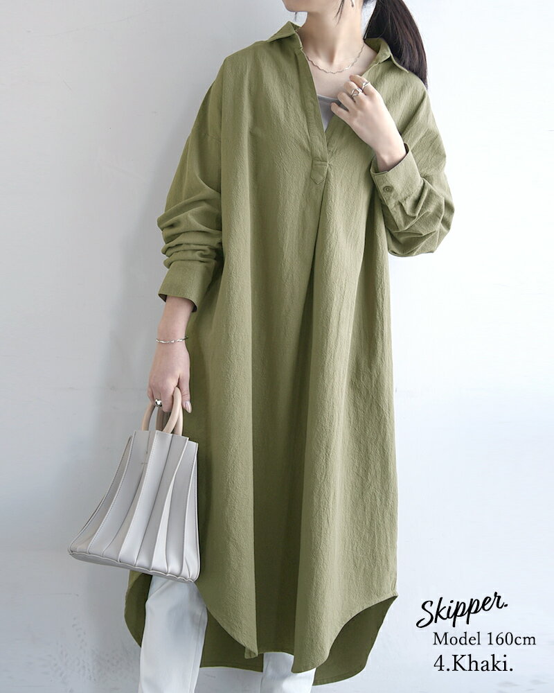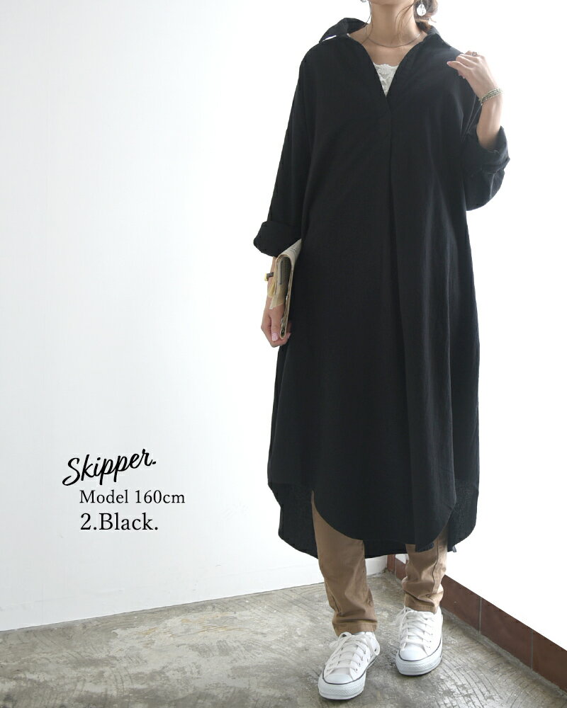 シャツワンピ ワンピース レディース 春 長袖 選べる2type!スキッパー&ベーシック 長袖ロングシャツワンピース 黒 ワンピ スキッパー シャツ 綿100% コットン100% 羽織り 無地 M L メール便10
