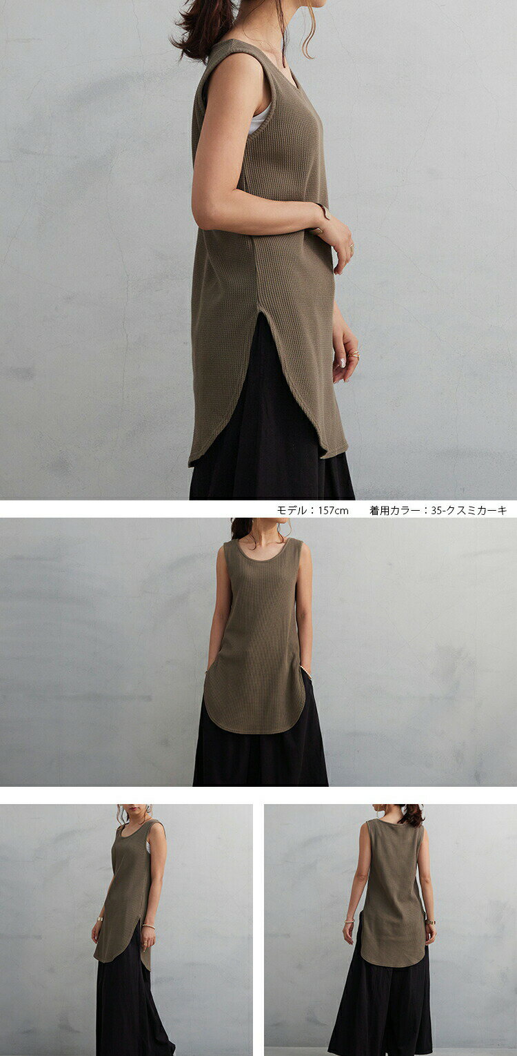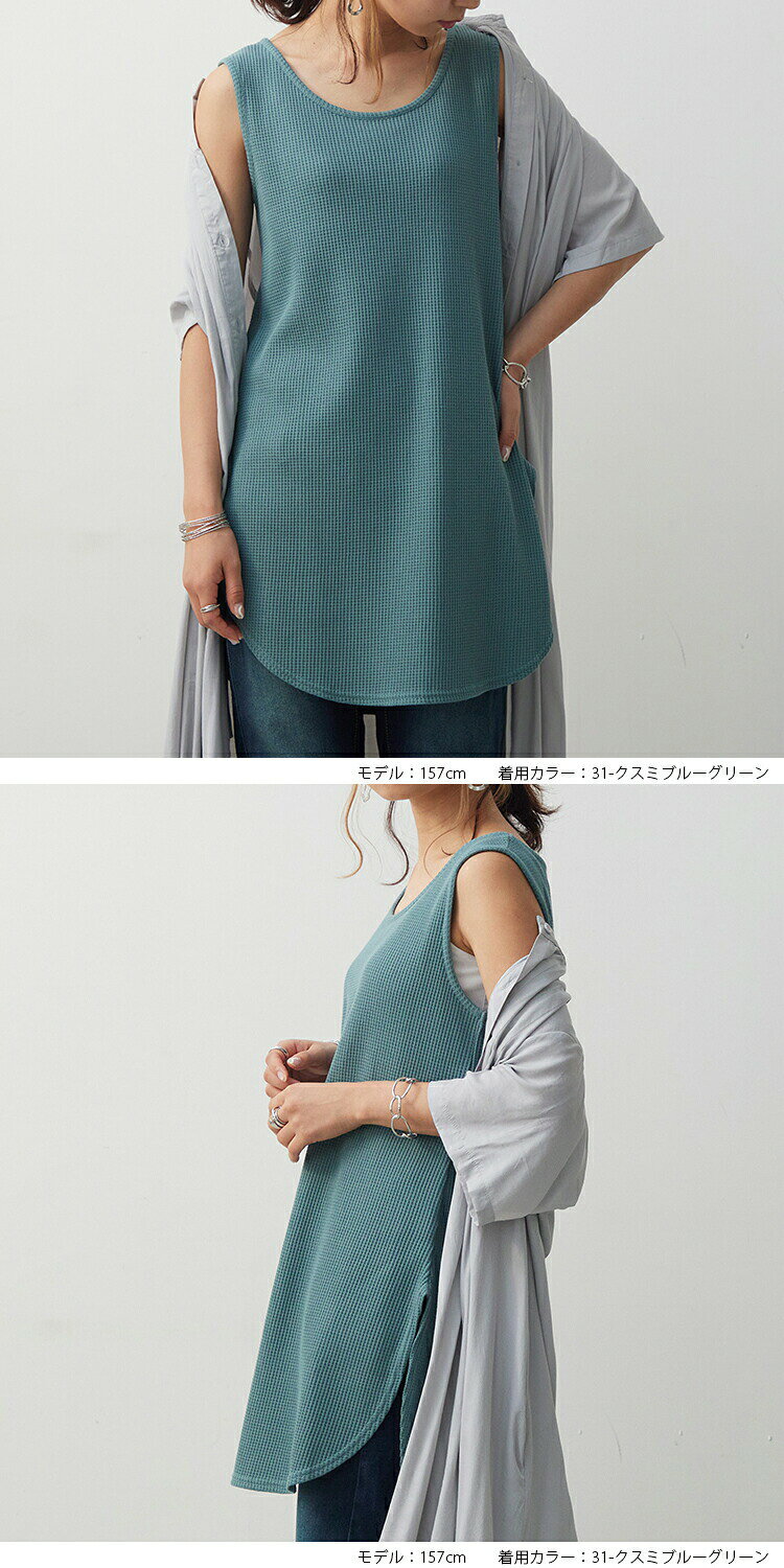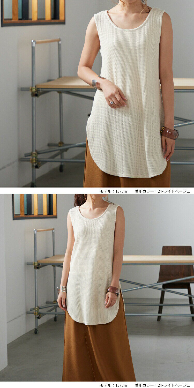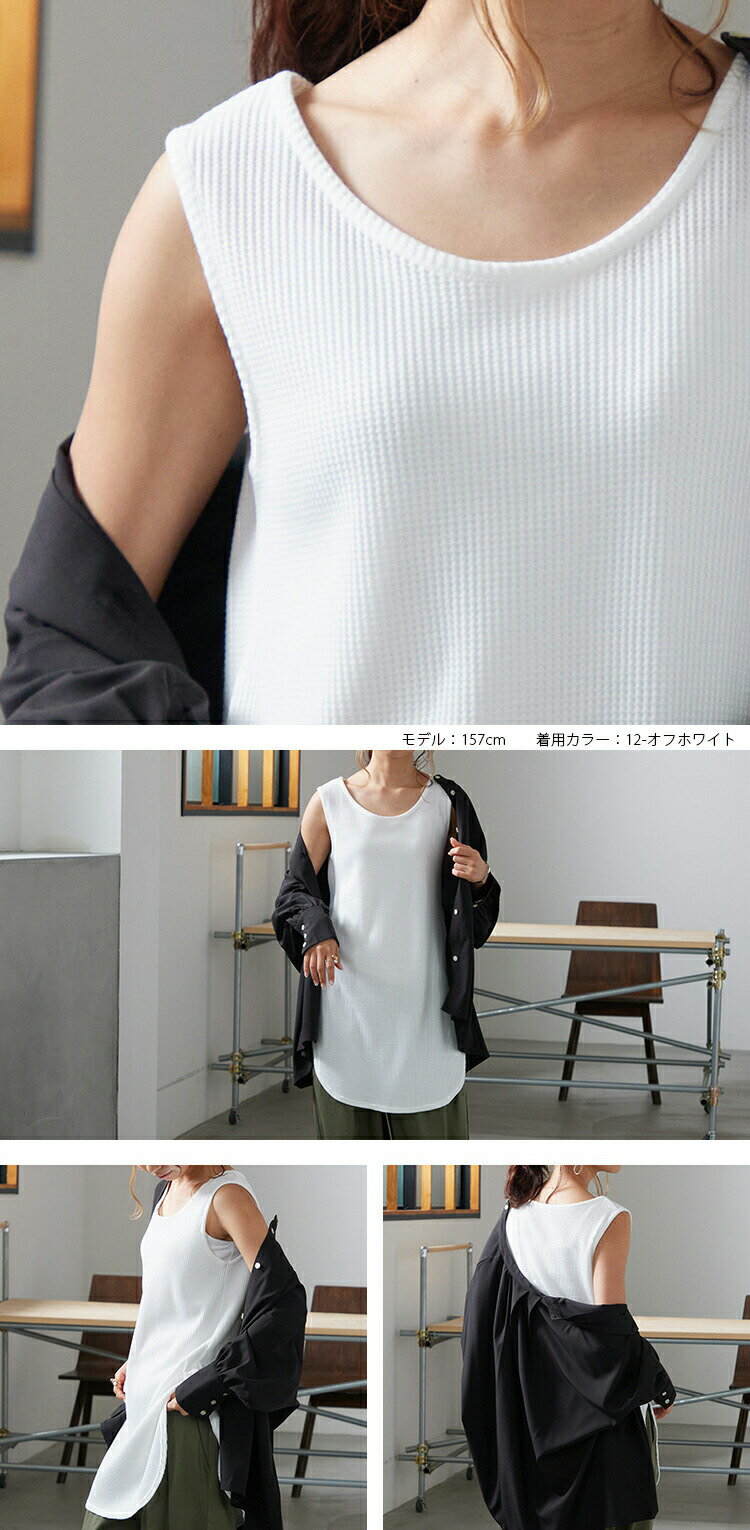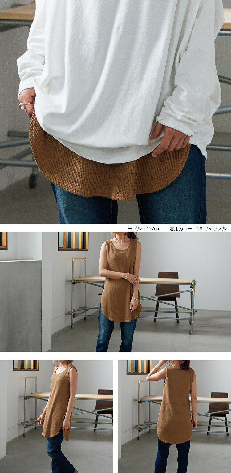 日本製 厚手 しっかり 生地 ワッフル タンクトップ ロング丈 ワンピース丈 レイヤード 重ね着 綿100 シンプル 無地 レディース 春 夏 秋 冬 白 ホワイト ベージュ ブルー ブラウン カーキ グレー 黒 ブラック 全10色 フリーサイズ M/L 【8】