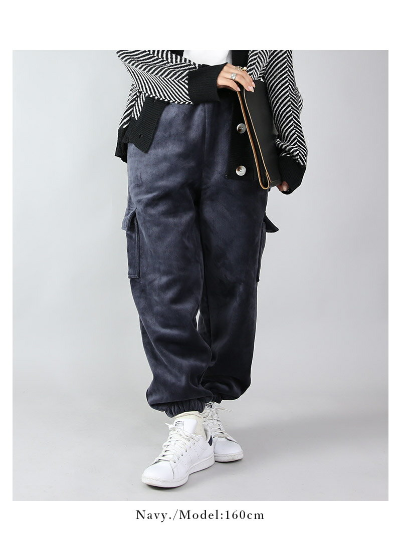 パンツ レディース 裏ボアカーゴパンツ ボトムス ロング丈 ロングパンツ コーデュロイ 裏起毛 あったか 暖かい 防寒 寒さ対策 トレンド お洒落 ウエストゴム 楽ちん ラフ カジュアル ネイビー ナチュラル 秋 冬 24aw AW, M-L メール便不可