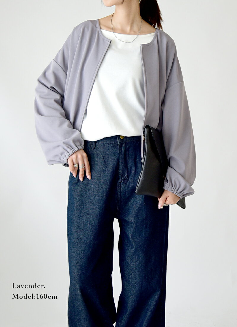 カーディガン レディース 梨地 クロップドカーディガン トップス カーデ 羽織り 長袖 ショート丈 ワイド ゆったり 楽ちん 体型カバー ノーカラー ストレッチ シワになりにくい シンプル きれいめ ラベンダー グレージュ ネイビー ブラック 秋 冬 24aw AW, M L メール便10