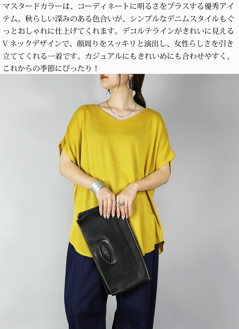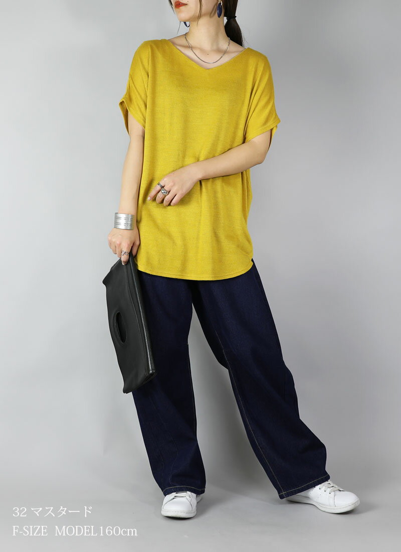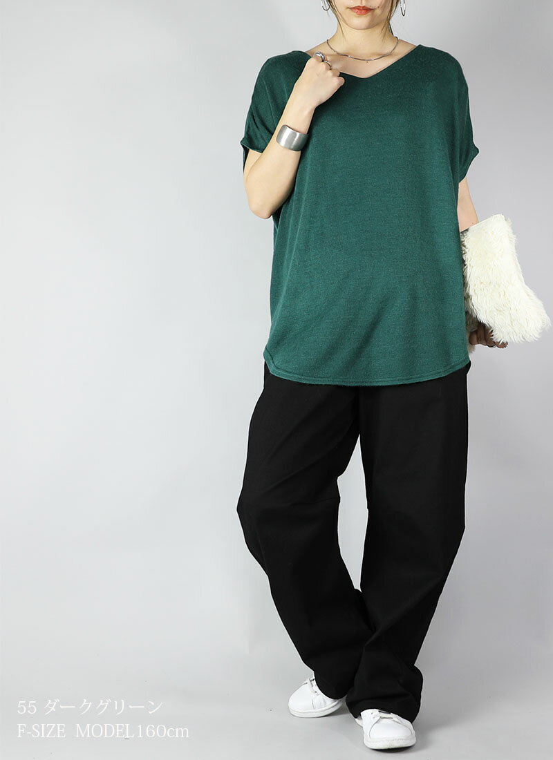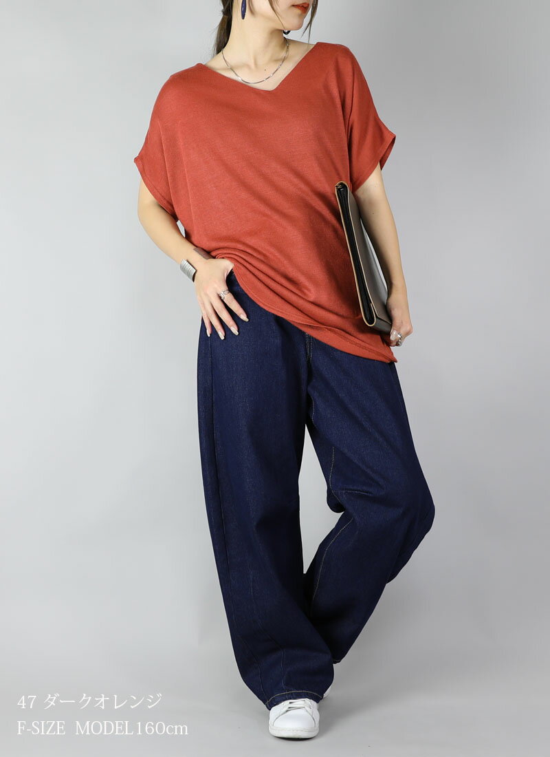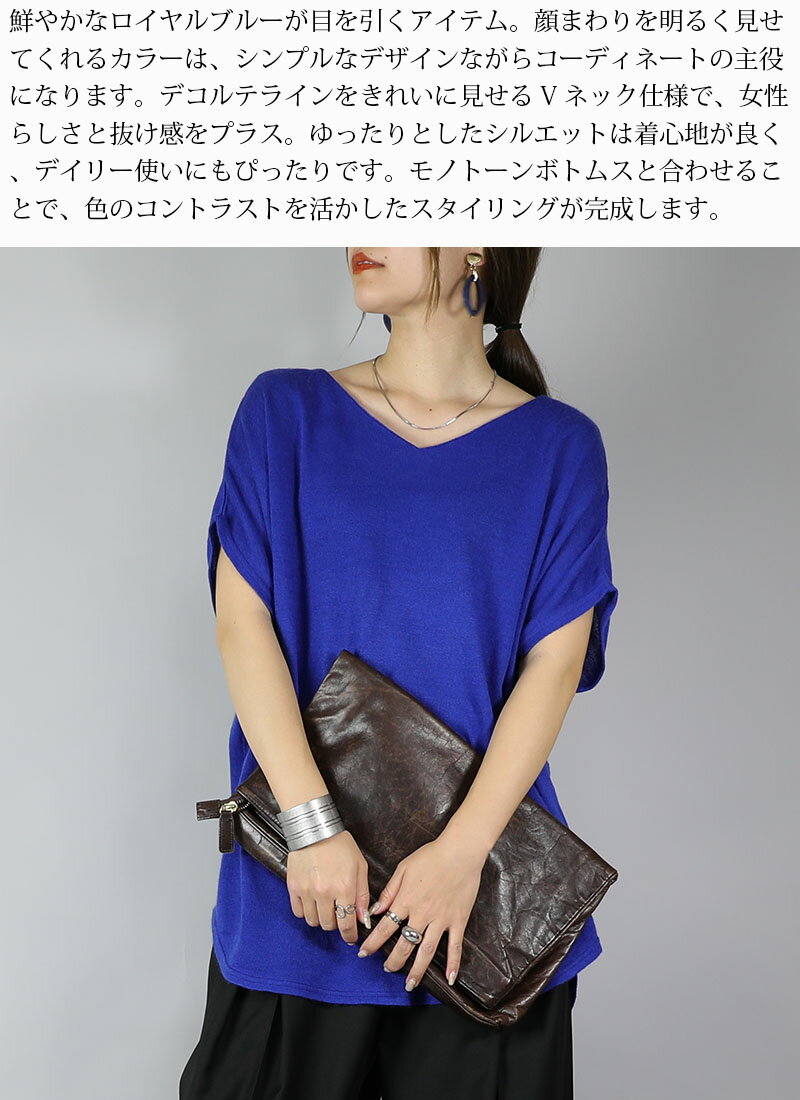 ニット レディース Vネックドルマンニットソー トップス 半袖 薄手 ニット カットソー 日本製 安心 シンプル 無地 すっきり 楽ちん 着回し ブルー グリーン マスタード オレンジ ブラック 春 秋 冬 SS, AW, F メール便10 ★