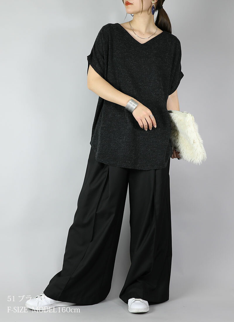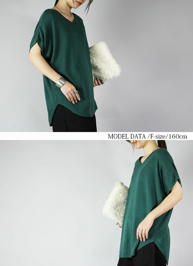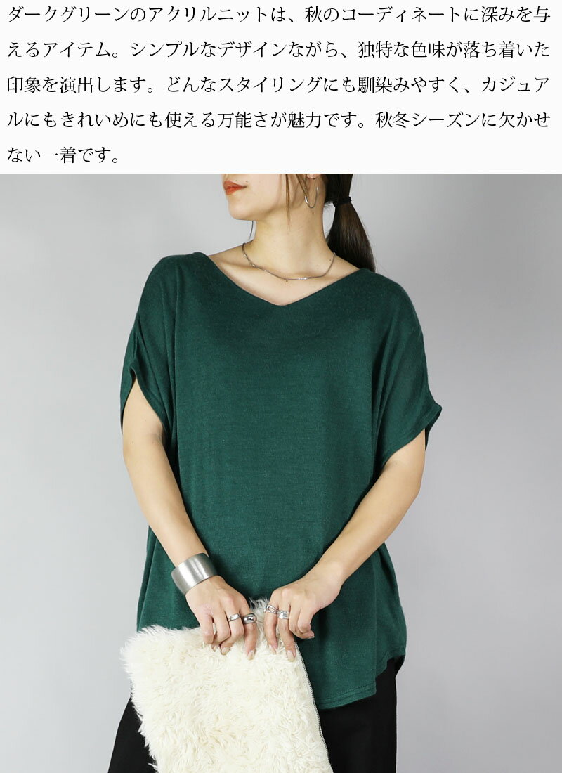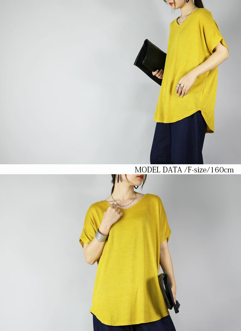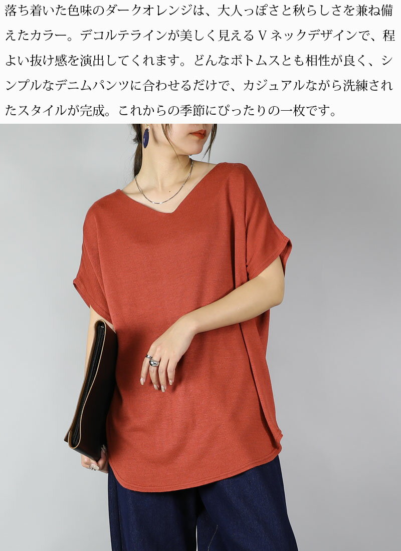 ニット レディース Vネックドルマンニットソー トップス 半袖 薄手 ニット カットソー 日本製 安心 シンプル 無地 すっきり 楽ちん 着回し ブルー グリーン マスタード オレンジ ブラック 春 秋 冬 SS, AW, F メール便10 ★