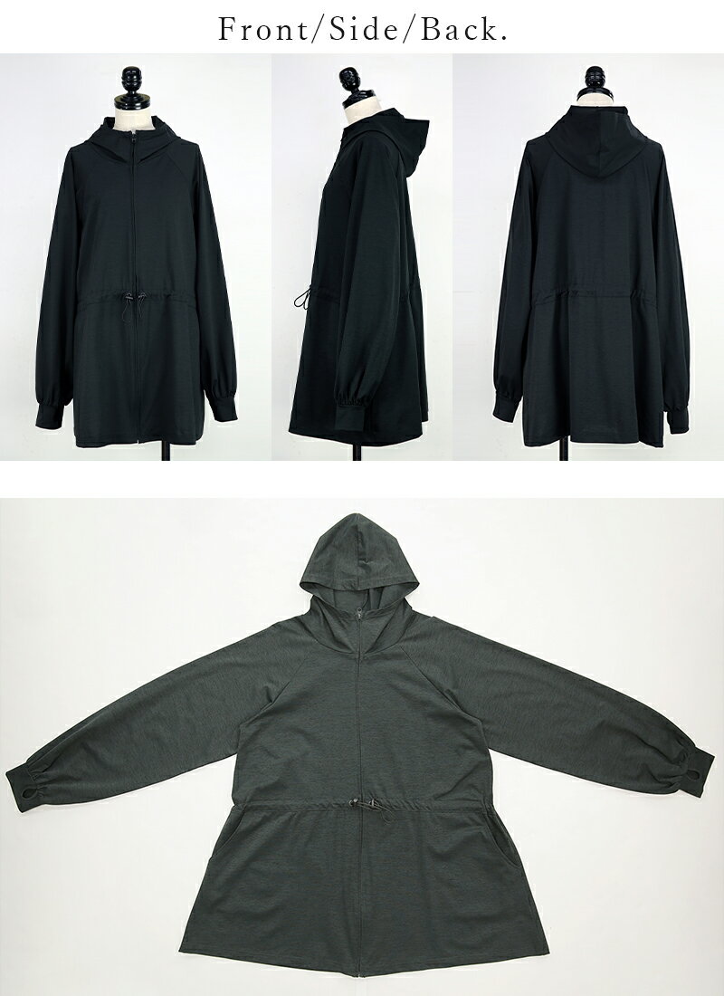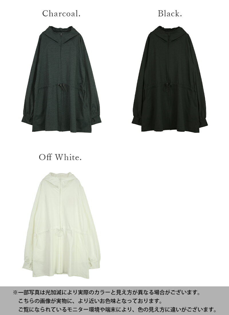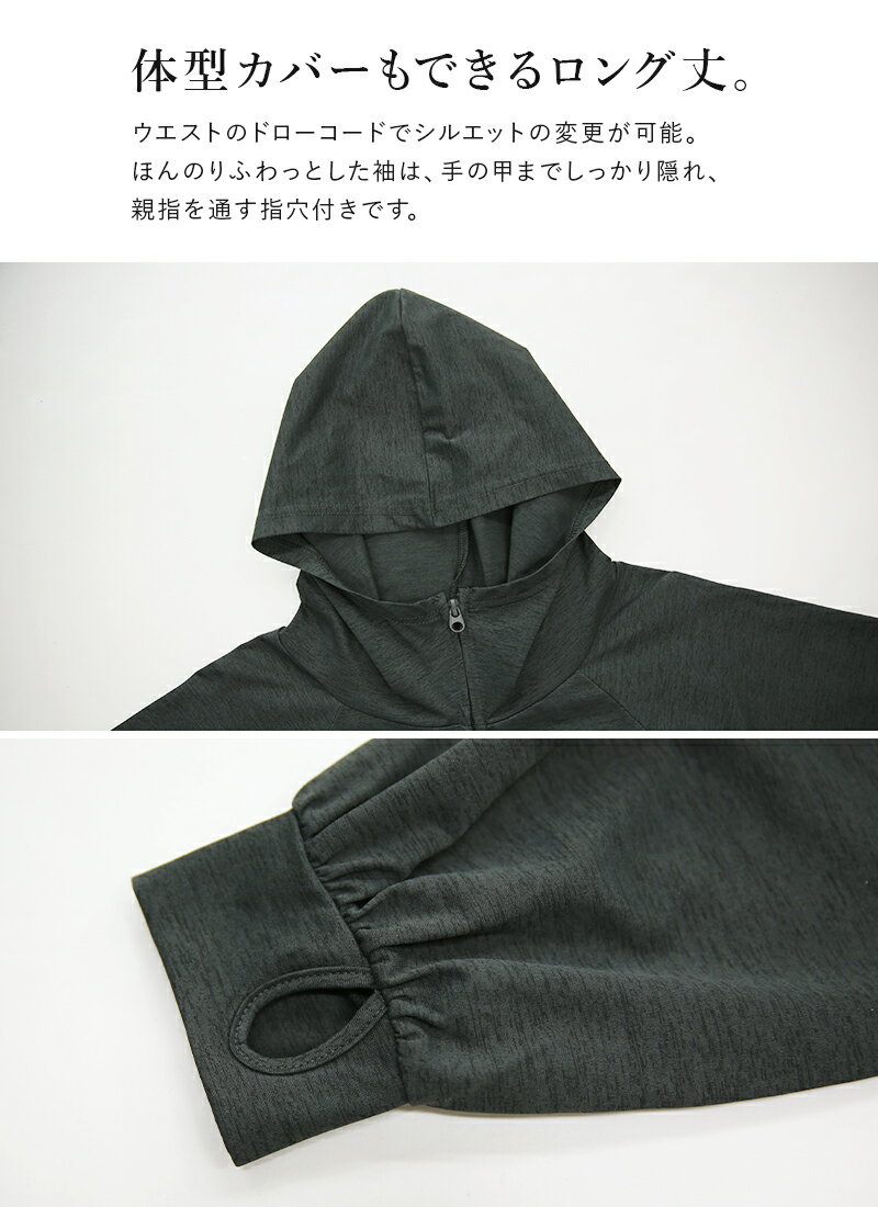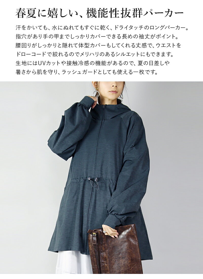 パーカー レディース UVカット&ドライタッチ接触冷感ロングパーカートップス 羽織り 長袖 指穴 紫外線対策 UV対策 日差し対策 ひんやり 涼しい 涼感 ロング丈 お尻が隠れる ラッシュガード 速乾 オフホワイト ブラック チャコール 白 黒 春 夏 SS, M-L メール便10
