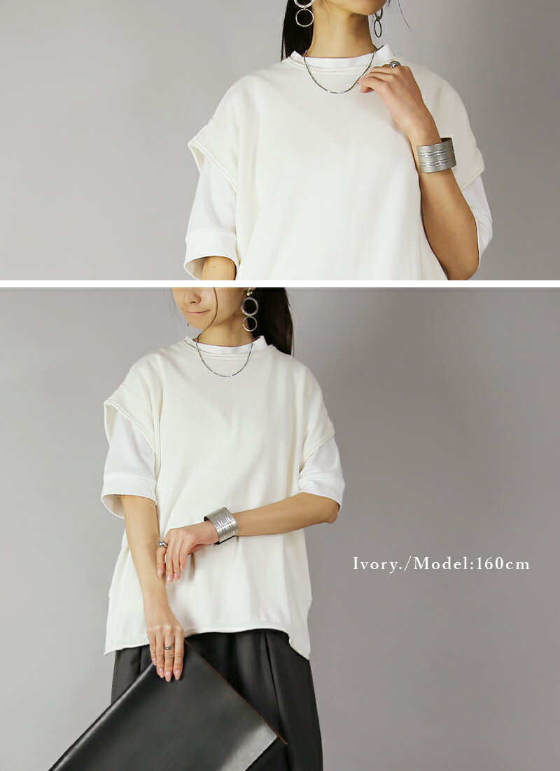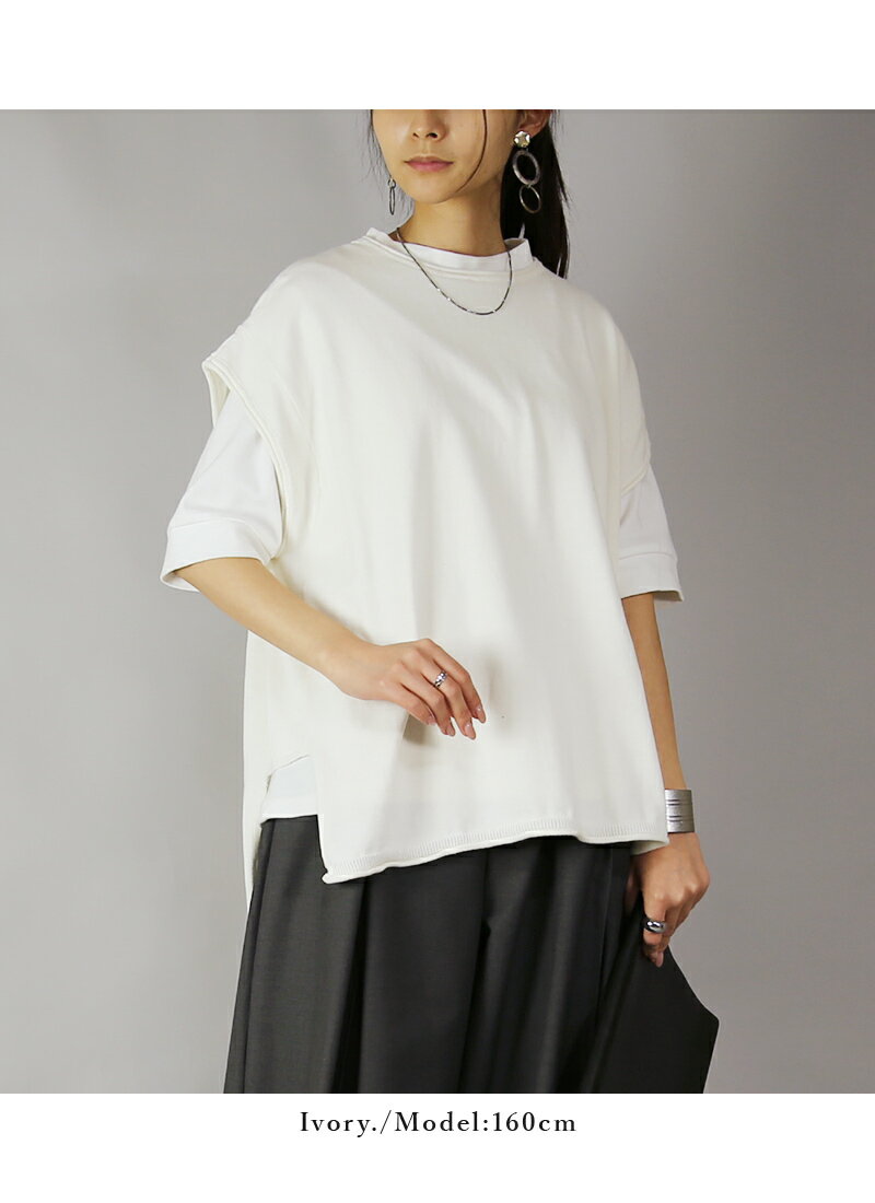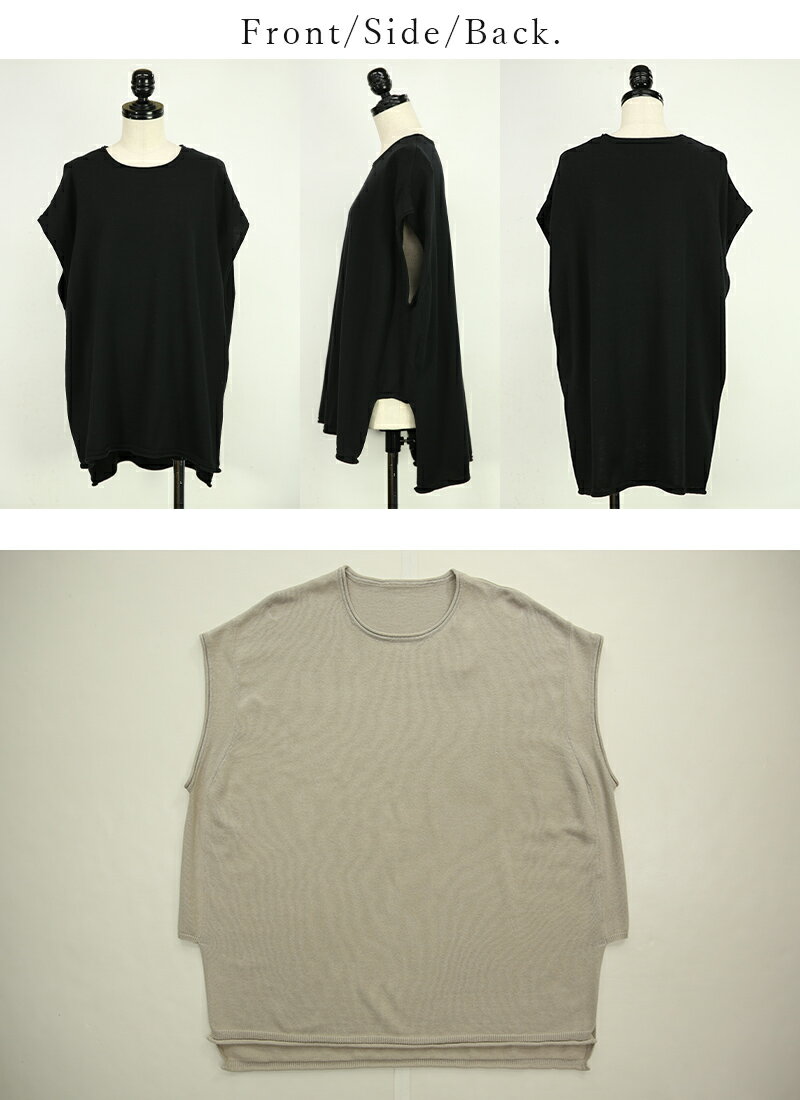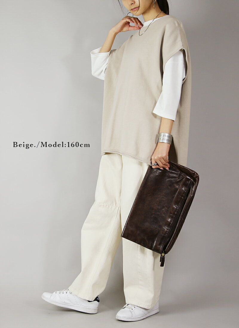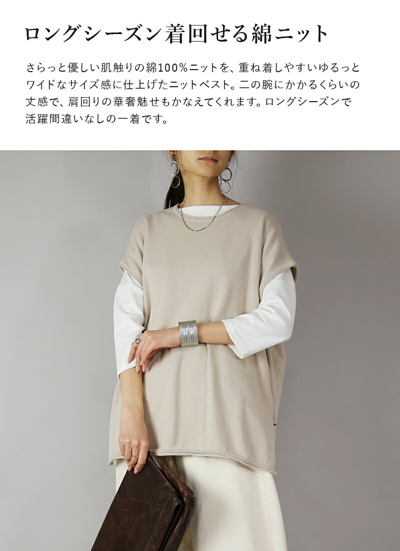 ベスト レディース 綿ニットワイドベスト トップス ニットベスト ワイド 綿100% コットンニット 華奢魅せ ゆったり 楽ちん ラフ 重ね着 レイヤード 大人可愛い カジュアル お洒落 アイボリー ベージュ ブラック 白 黒 春 夏 秋 SS, AW, M-L メール便10 ★