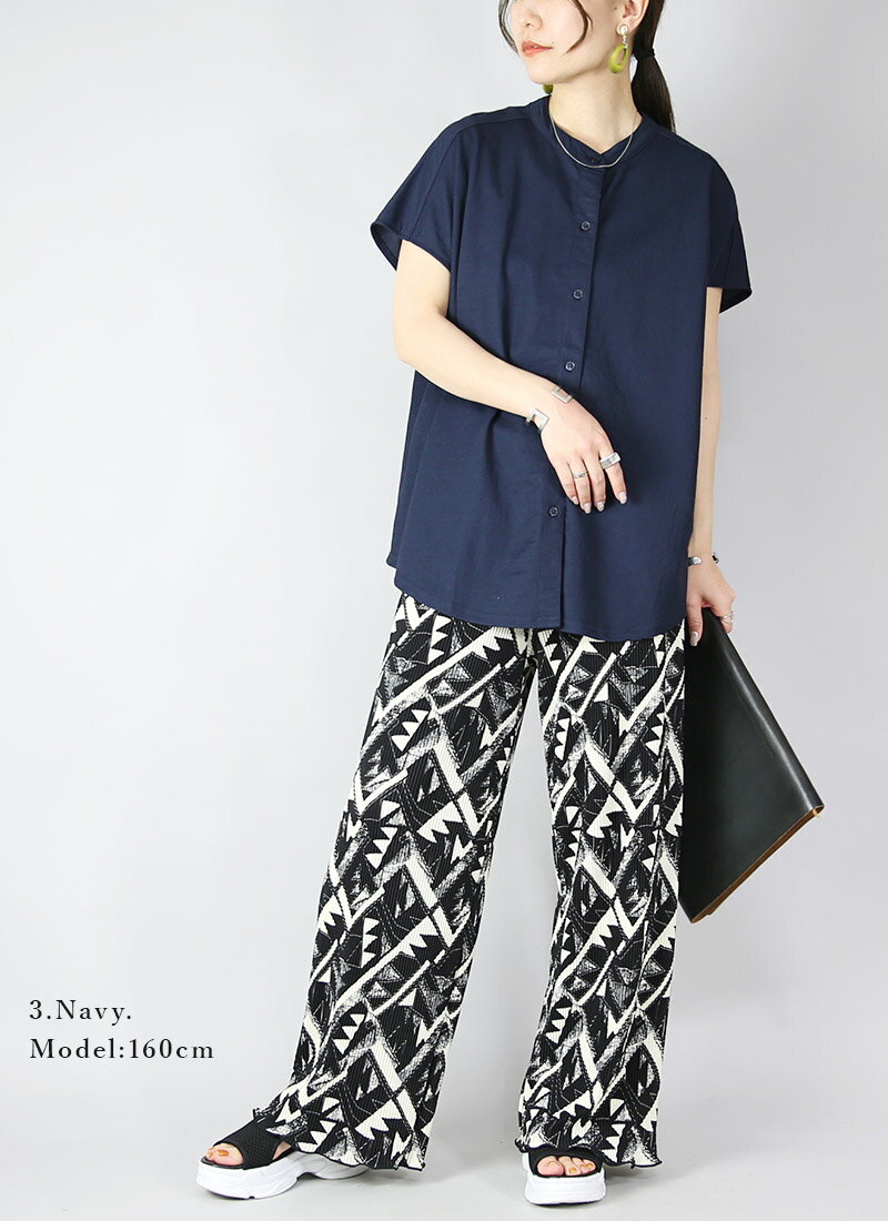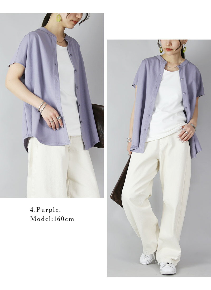 【受注発注】プルオーバー レディース 冷感前開きプルオーバー トップス シャツ フレンチスリーブ 接触冷感 涼しい ひんやり 快適 羽織り ワイド ゆったり 楽ちん ラフ シンプル 無地 ホワイト ブラック ネイビー パープル 春 夏 SS, M L メール便10