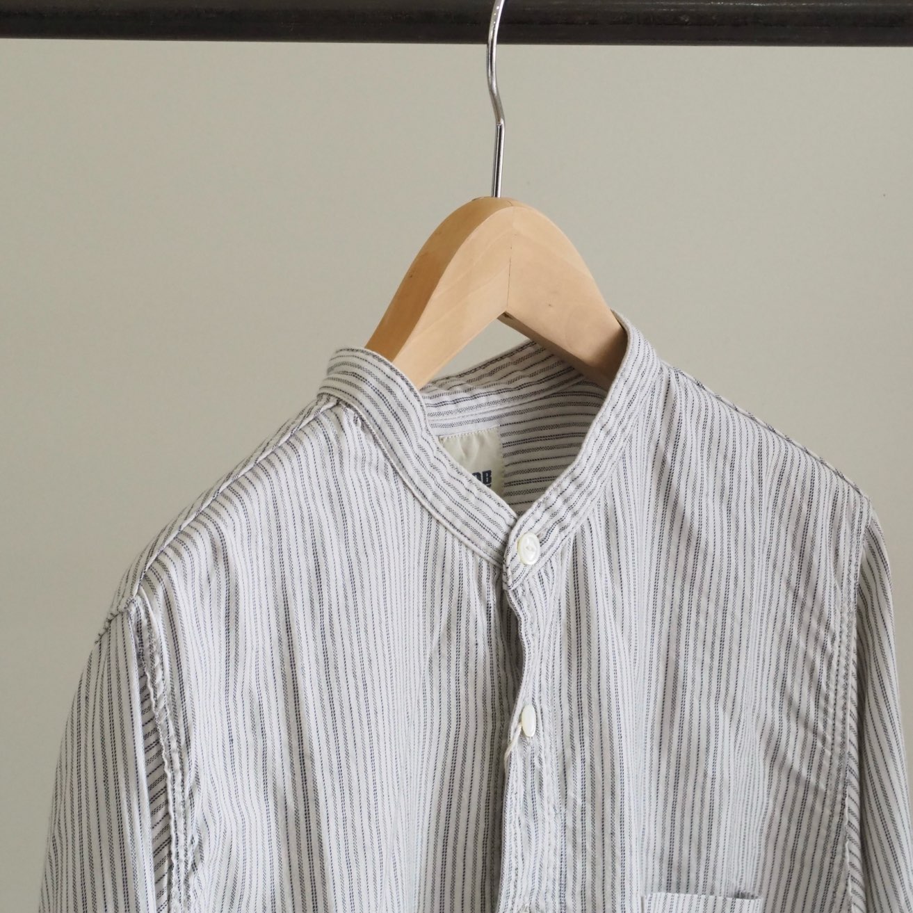 【スーピマコットンを使用したストライプブロードシャツ】F.O.B factory(エフオービーファクトリー)/BAND COLLAR SHIRTS /メンズ/日本製/25ss【BLUE/WHITE】全2色