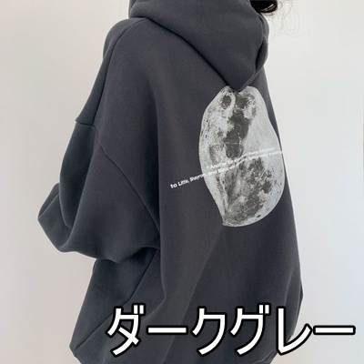 トップス パーカー トレーナー レディース 送料無料 個性的冬 オーバーサイズ 月 宇宙 長袖 フード付き ドロップショルダー 萌え袖 黒 グレー ランタンスリーブ ゆったり 体型カバー 着痩せ 細見え お洒落 大人可愛い バックプリント