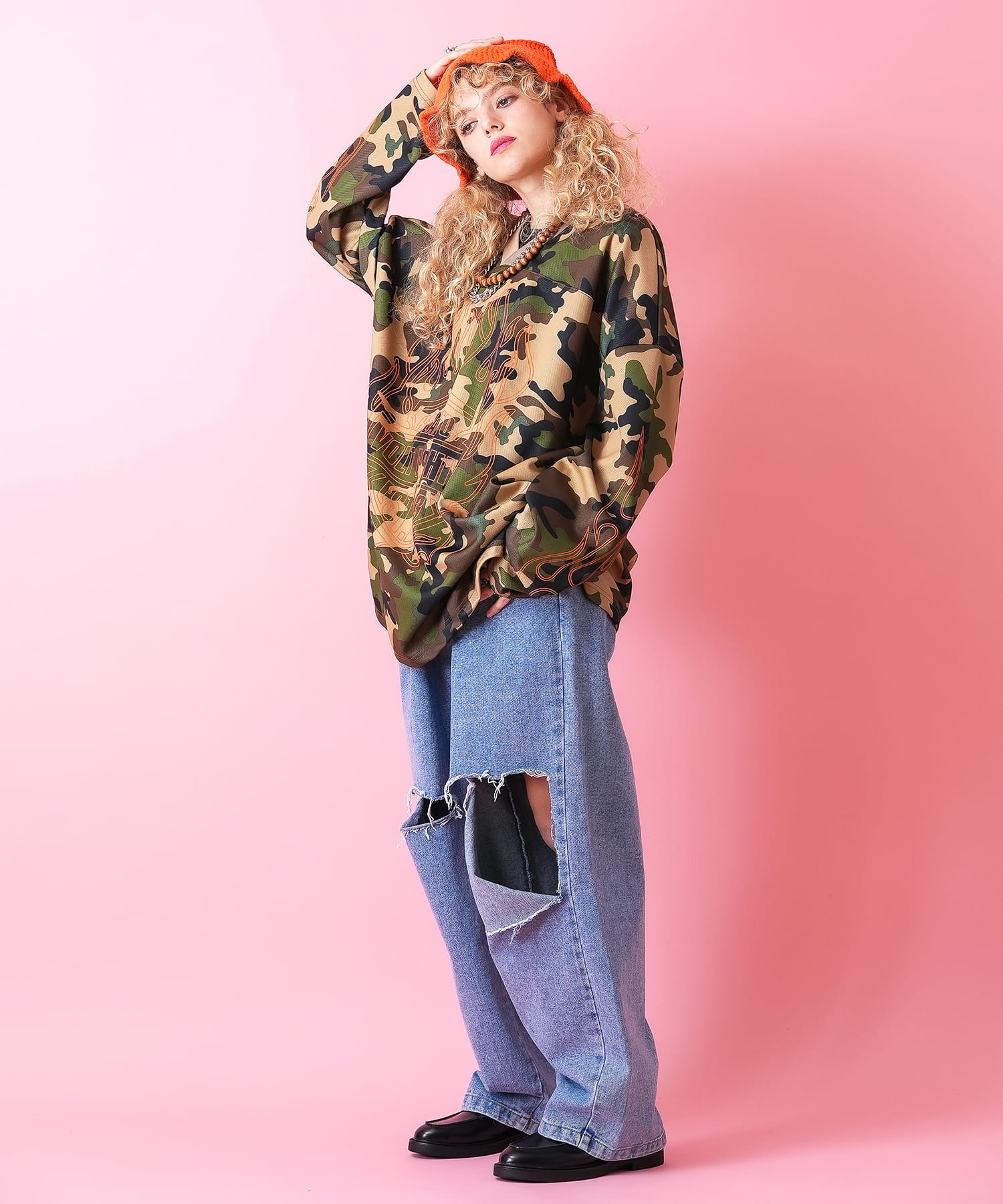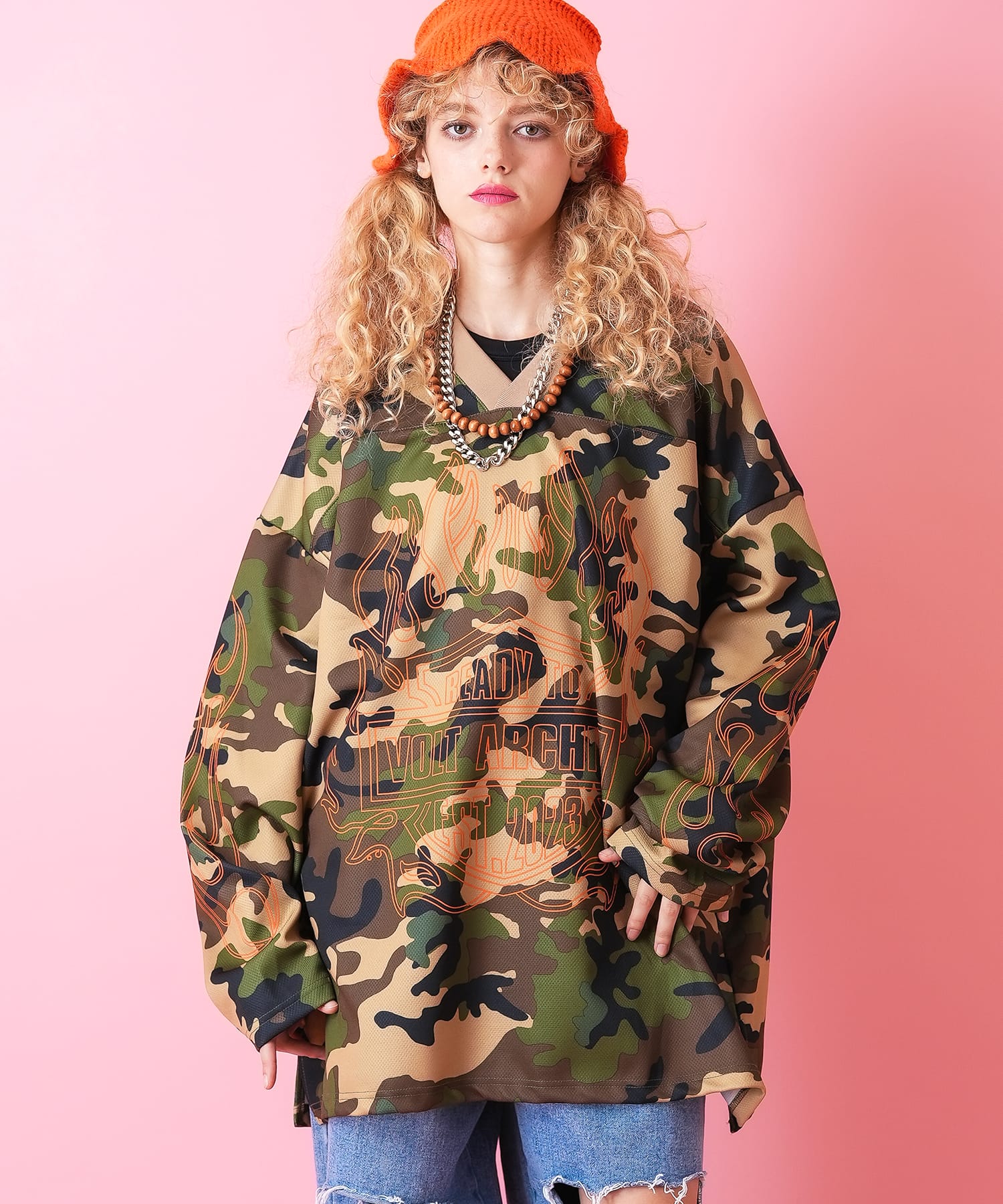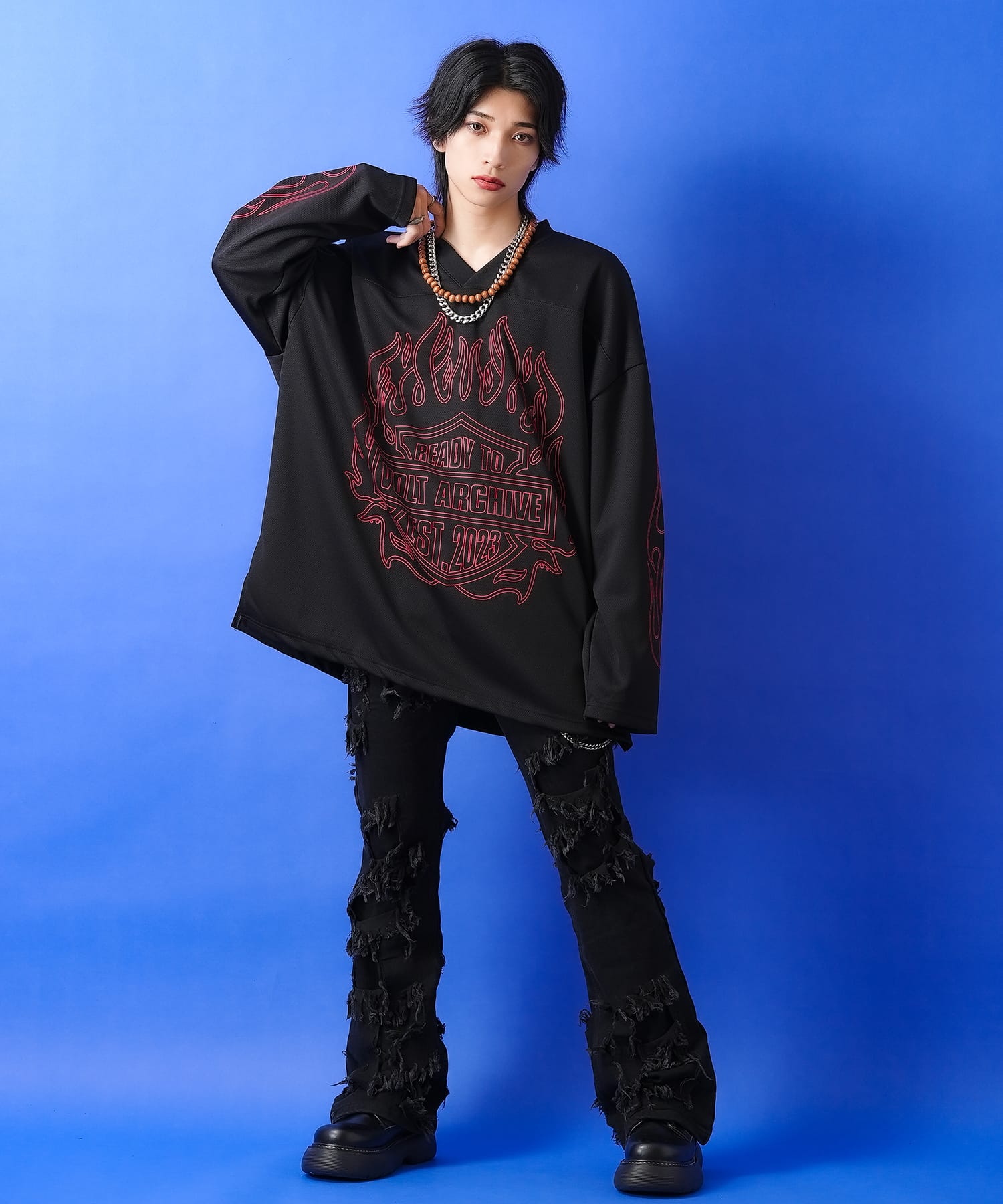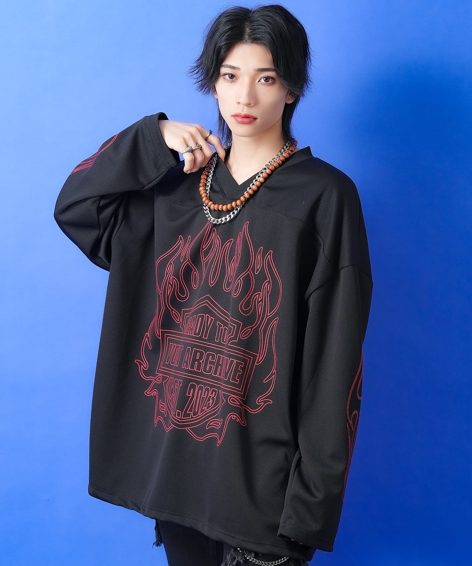 a.p.o.v. -ankoROCK's select- フレイムパターンプリントフットボールシャツ / メンズ レディース ユニセックス オーバーサイズ ゲームジャージ ユニフォーム 炎柄
