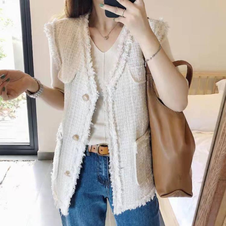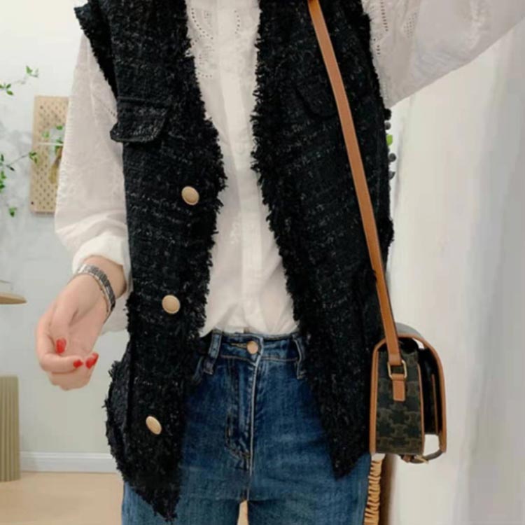 ツイードベスト レディース 前開き 秋 ジレ 春秋 かわいい おしゃれ ツイード Vネックベスト エレガント きれいめ アウター エレガント 卒業式 母 卒園式 入園式 セレモニー S M L XL 2XL 3XL