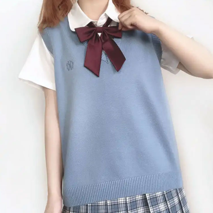 スクールベスト 制服 ベスト Vネック 夏用 薄手 ニットベスト 定番 レディース 制服ベスト スクール ベスト ノースリーブ スクールセーター ロゴ 刺繡 高校生 中学生 学生服 女子高生 通学 無地 ゆったり 男女兼用 通年 通学