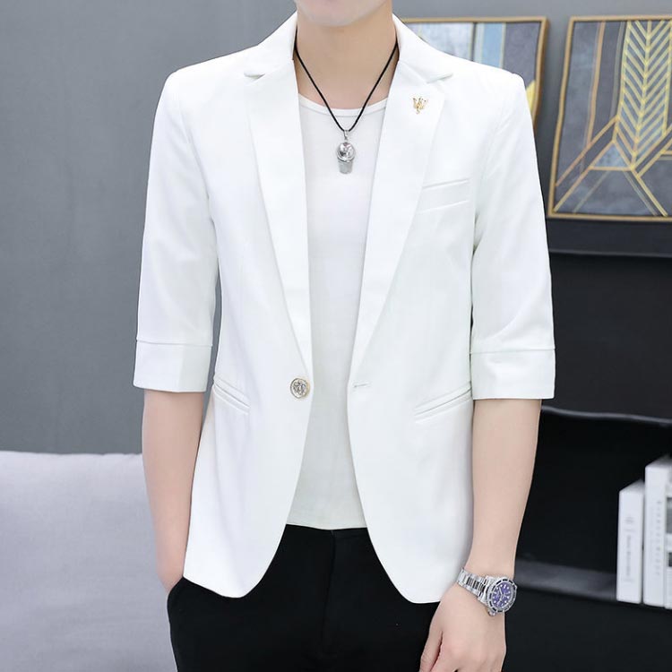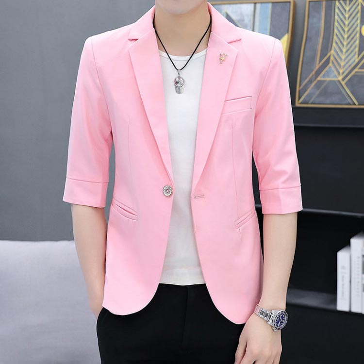 シンプル 7分袖ジャケット ホワイト テーラードジャケット 送料無料 無地 薄手 春 夏 七分袖 ライトアウター ピンク ブラック メンズ