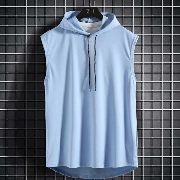 フード付き プルオーバー パーカー ノースリーブ tシャツ 接触冷感 シンプル プルオーバーベスト 夏 涼感 ひんやり カジュアル 春 夏 秋 トップス