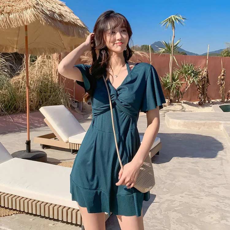 【送料無料】水着 ワンピース インナーパンツ付き 体型カバー レディース セクシー オフショルダー vネック カップつき フリル 二の腕 カバー 大きいサイズ 女性 オトナ 20代 30代 40代 50代 露出控えめ