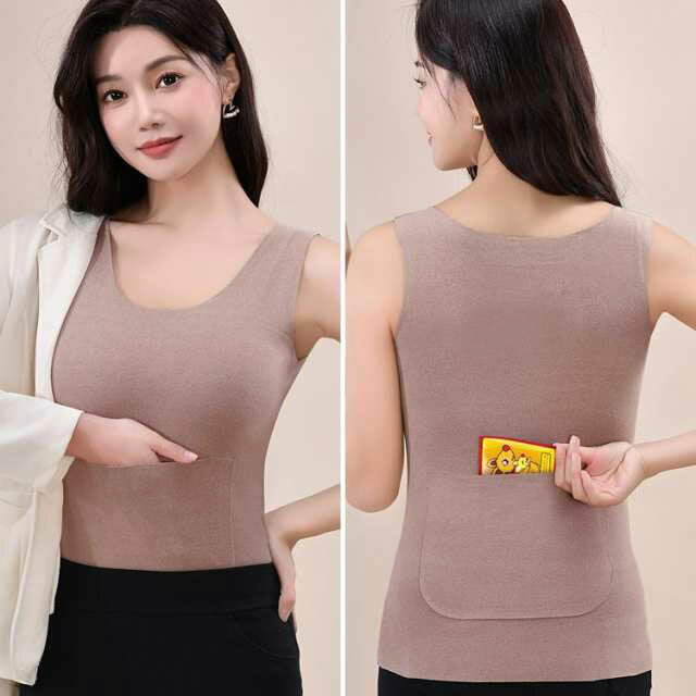 タンクトップ 微起毛 2枚セット インナー レディース 秋冬 肌着 カイロ ポケット クルーネック ノースリーブ トップス 体型カバー あたたか 大きいサイス 暖かい 防寒 着痩せ お洒落