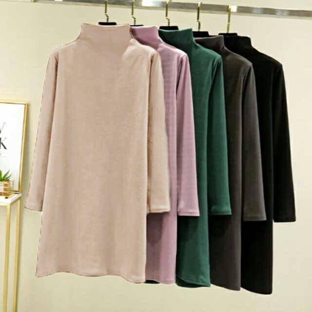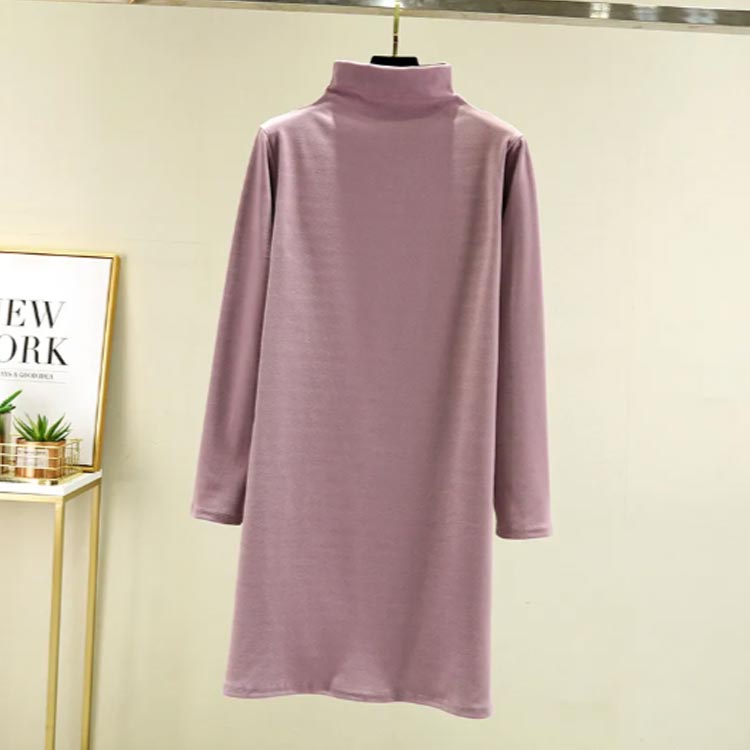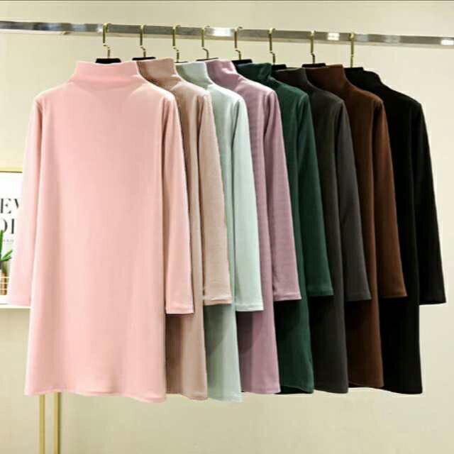 レディース タートルネック チュニック 裏起毛 ワンピース トップス 長袖 ロンT ハイネック カットソー 秋冬 微起毛 ロング丈 Tシャツ あったかインナー インナーシャツ 防寒 あったか 暖かい プルオーバー 着痩せ 厚手 体型カバー カジュアル 重ね着 無地 シンプル