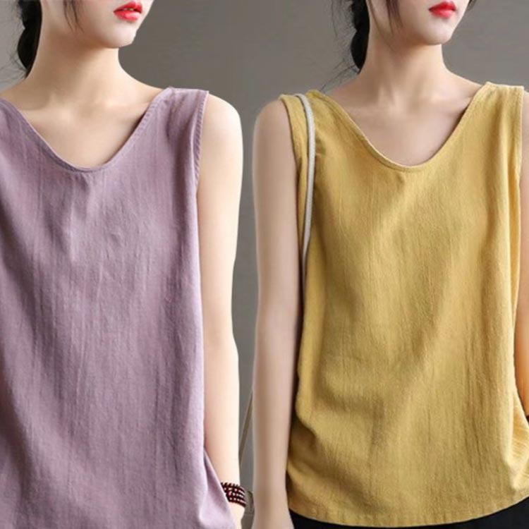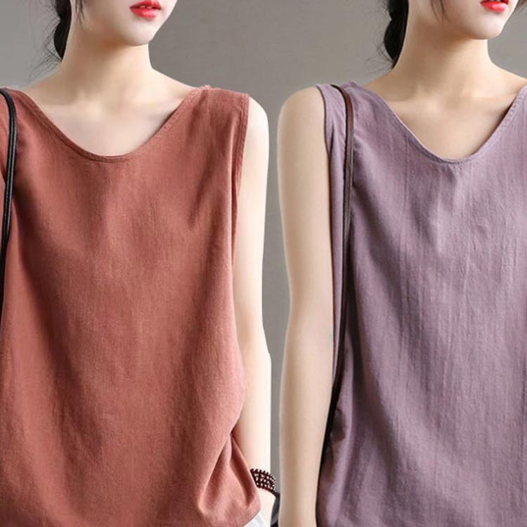 タンクトップ レディース 袖なし 綿麻風 サマータンク ロング ノースリーブ tシャツ インナー コットンリネン トップス ゆったり 大きいサイズ シンプル 重ね着 大人 お洒落 レイヤード 着痩せ 無地 春 夏 部屋着