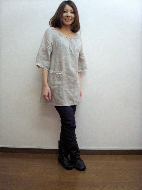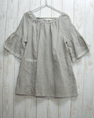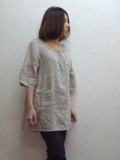 リネンスモック・ベルスリ−ブチュニック日本製/生成り・M~5Lサイズ