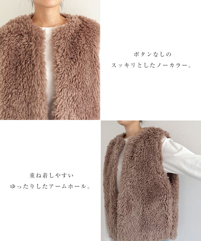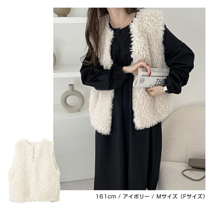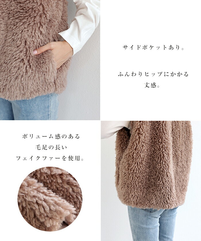 【宅配便B】【一部予約】ファーベスト ベスト レディース シープ風ボア アウター ジレ ジャケット サイドポケット 上品 ボリューム感 羽織り 秋 冬【メール便NG】