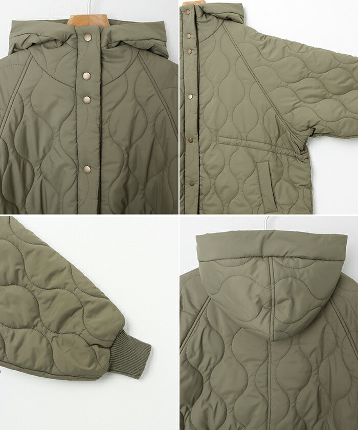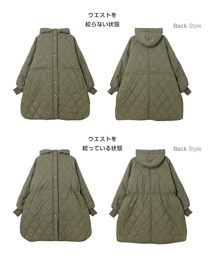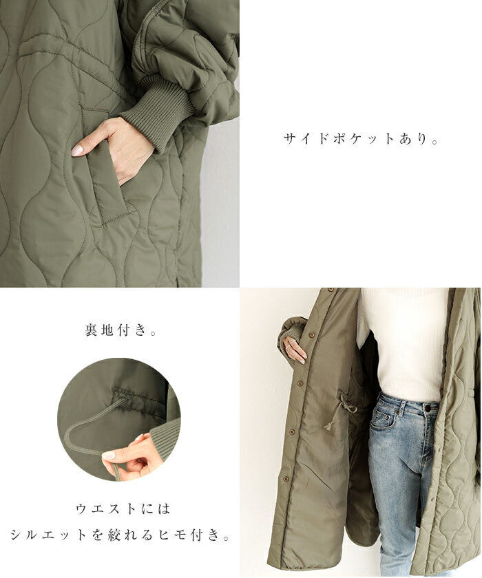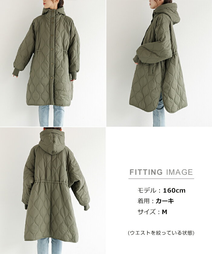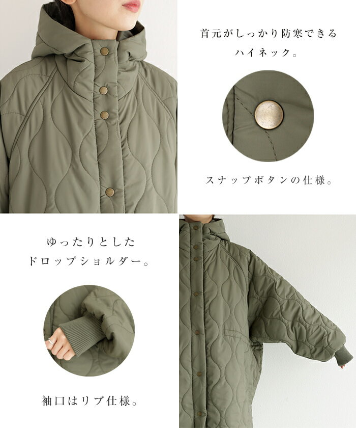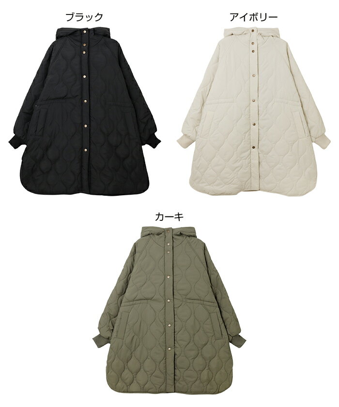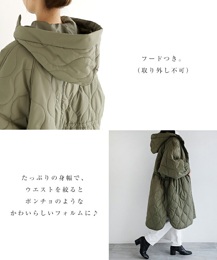 【宅配便B】【一部予約】【送料無料】フード付き キルティング ロング コート レディース ミリタリー ステッチワーク サイドポケット ポンチョ風 体型カバー オーバーサイズ 防寒 暖か 春 秋 冬【メール便NG】