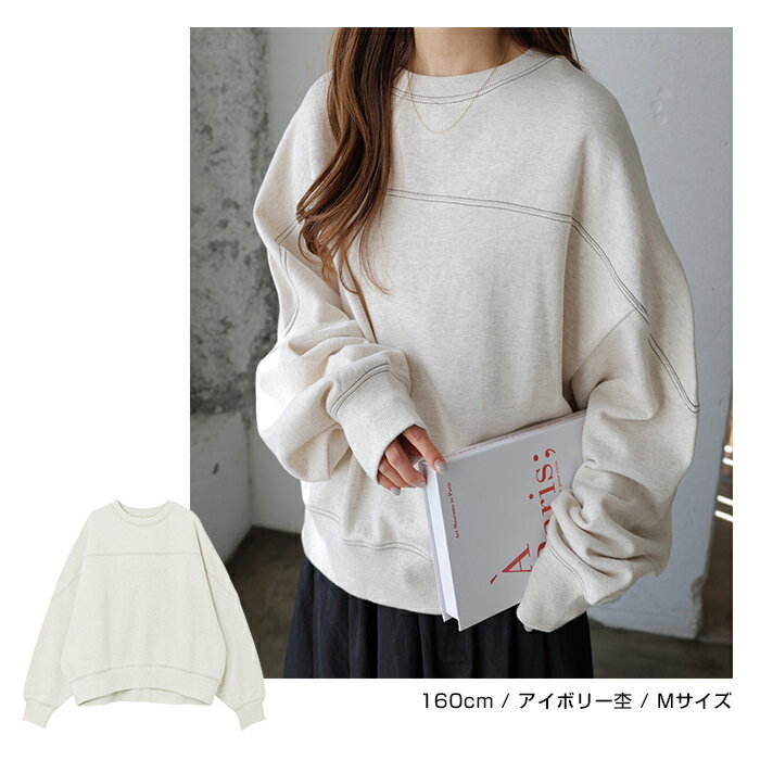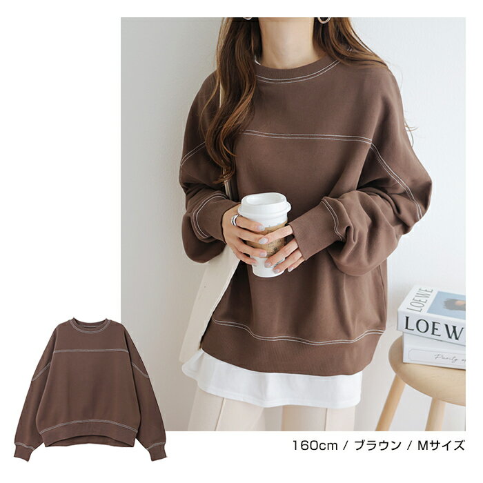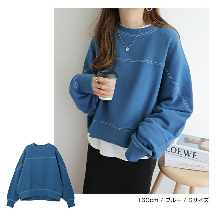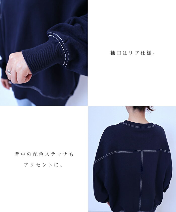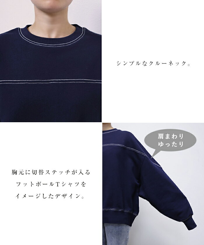 【宅配便A】【送料無料】裏毛 配色ステッチ 長袖 スウェット トップス レディース フットボール オーバーサイズ S/Mサイズ 春 秋 冬【メール便NG】