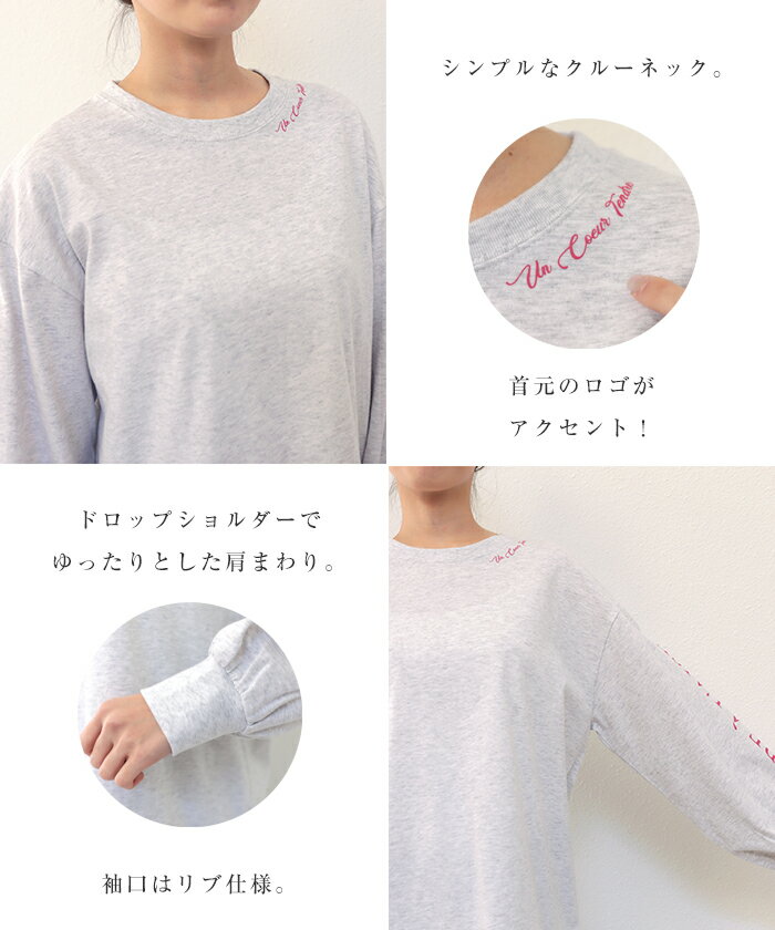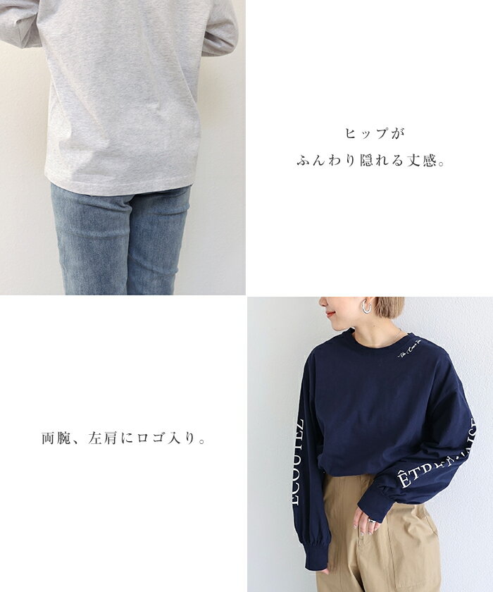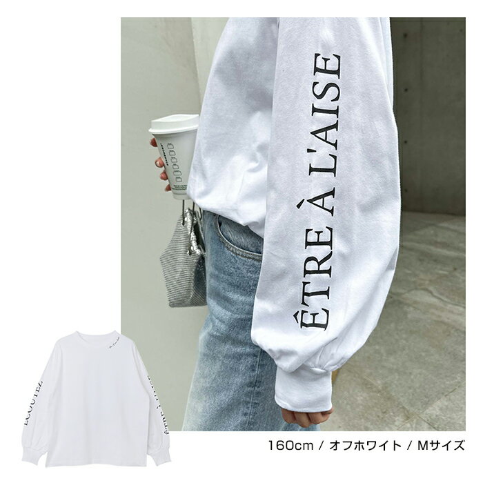 【メール便対応C】コットン ロゴ プリント ボリューム袖 Tシャツ レディース クルーネック ドロップショルダー オーバーサイズ 抜け感 コーマ天竺 春 秋 冬