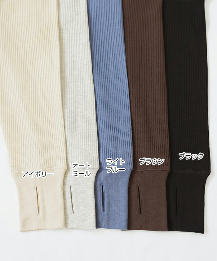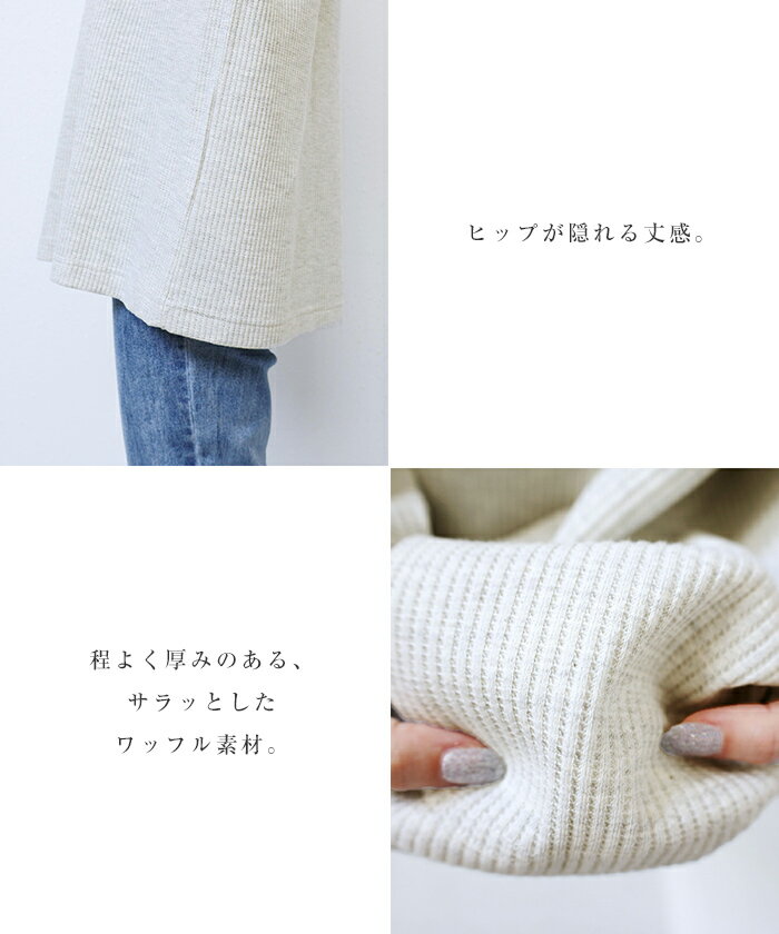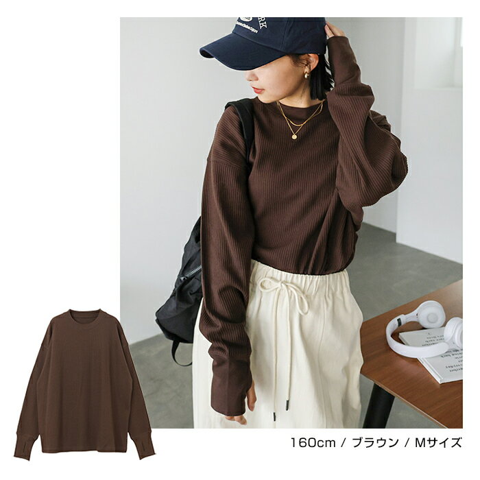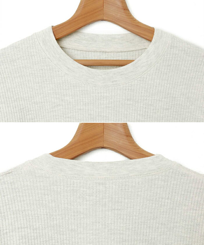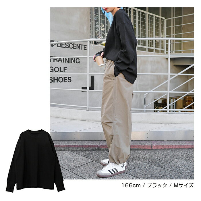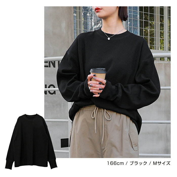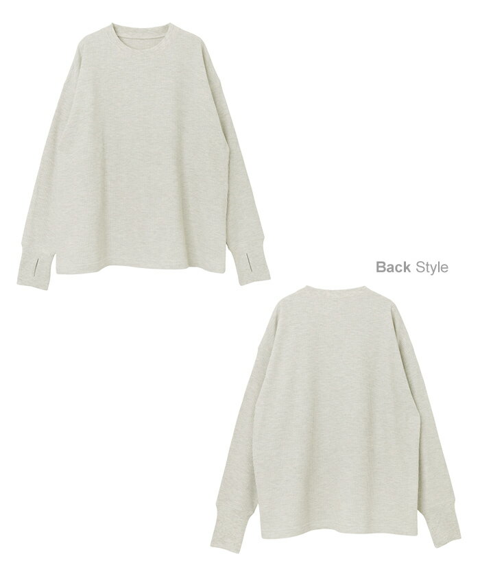 【宅配便A】ワッフル 指穴 サムホール 長袖 トップス レディース ドロップショルダー オーバーサイズ クルーネック 楽ちん ゆったり シンプル 無地 カジュアル 抜け感 春 秋 冬【メール便NG】