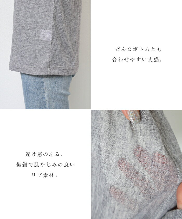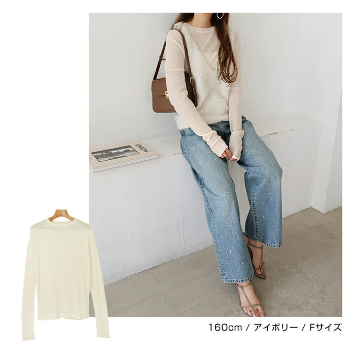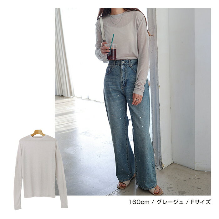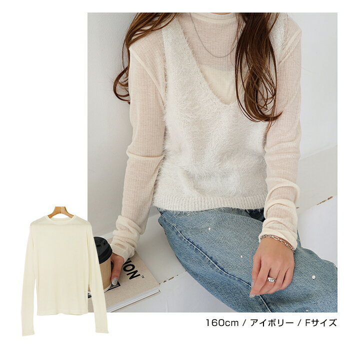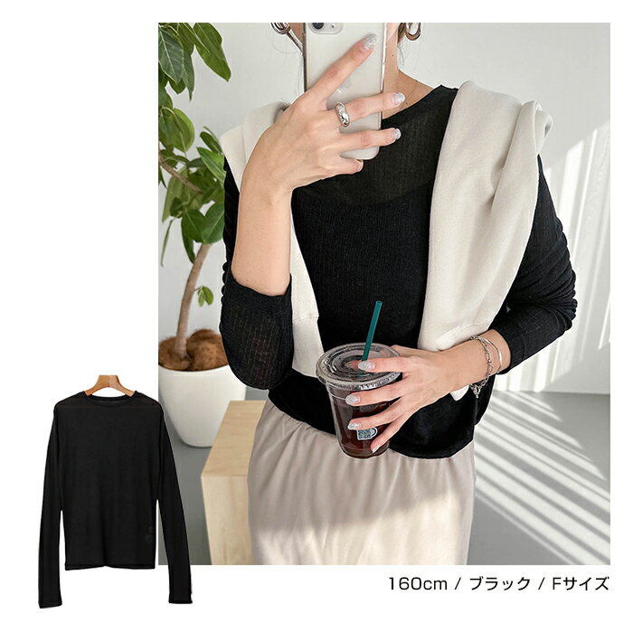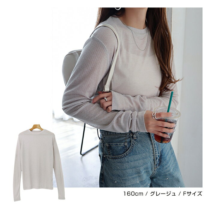【メール便対応C】テレコ シアー クルーネック 長袖 トップス シャツ レディース Tシャツ カットソー シアーシャツ 透け感 レイヤード リブ ストレッチ トレンド シンプル 春 秋 冬