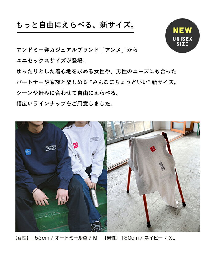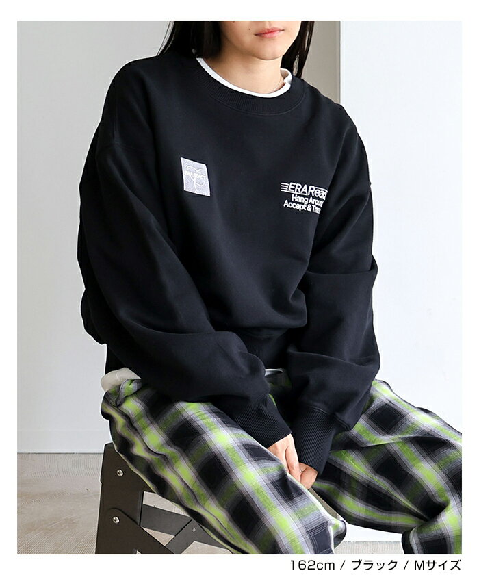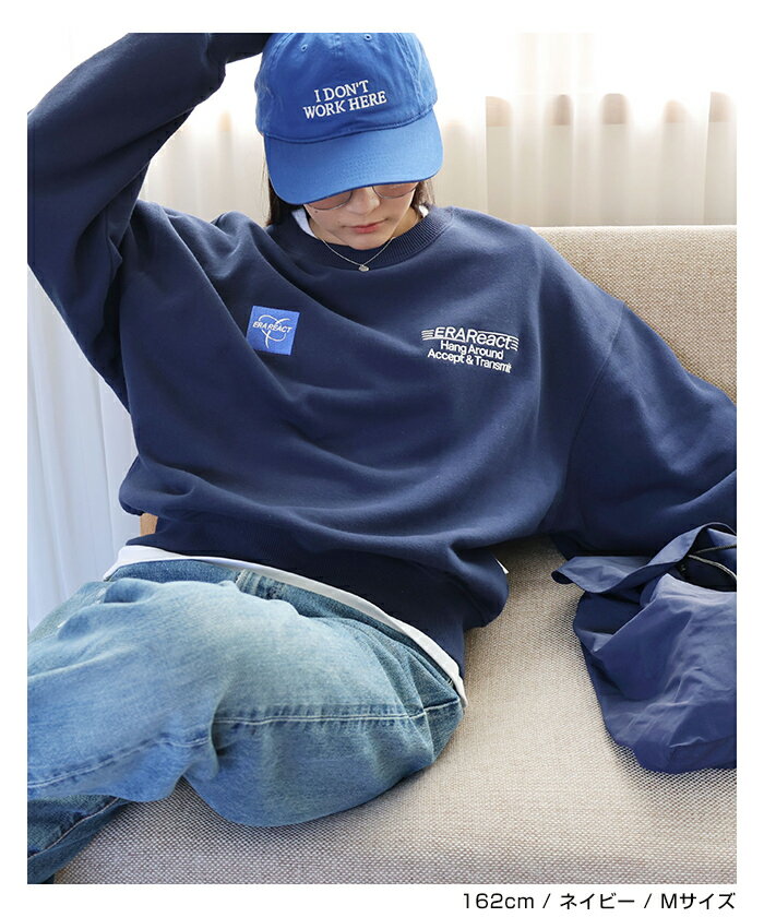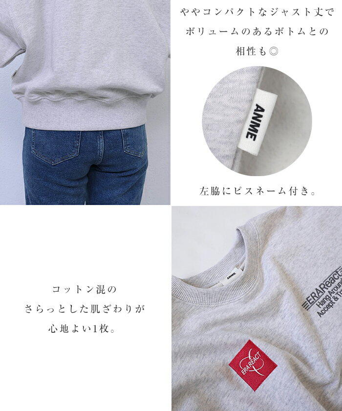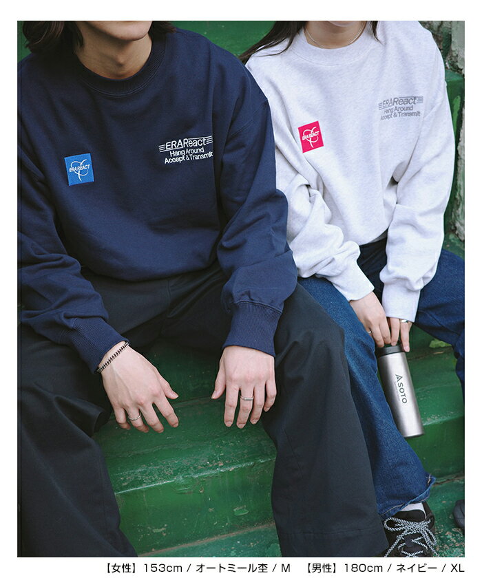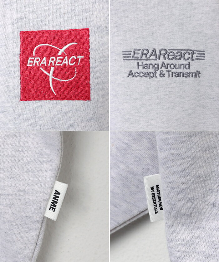 【宅配便A】【送料無料】ERAReact 刺繍ロゴ 裏毛 スウェット トップス レディース メンズ 男女兼用 ユニセックス ノームコア オーバーサイズ 体型カバー ヴィンテージライク 古着風 カジュアル シンプル エンブロイダリー M/L/XLサイズ 春 秋 冬 ANME アンメ【メール便NG】
