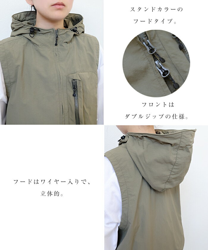 【宅配便A】【一部予約】【送料無料】接触冷感 UV ナイロンフーディベスト レディース アウター ブルゾン ジャケット 男女兼用 ユニセックス ノームコア ダブルジップ サイドポケット カジュアル 撥水効果 日焼け対策 M/Lサイズ 春 夏 秋 ANME アンメ【メール便NG】