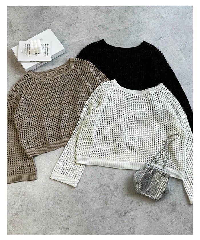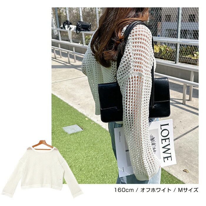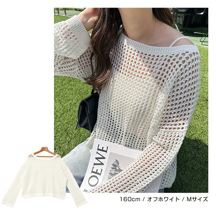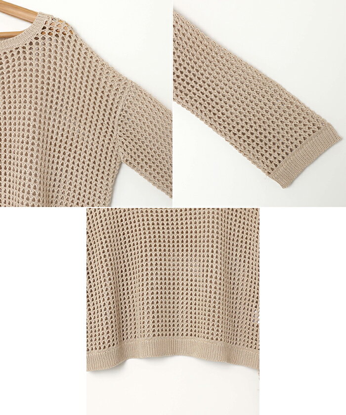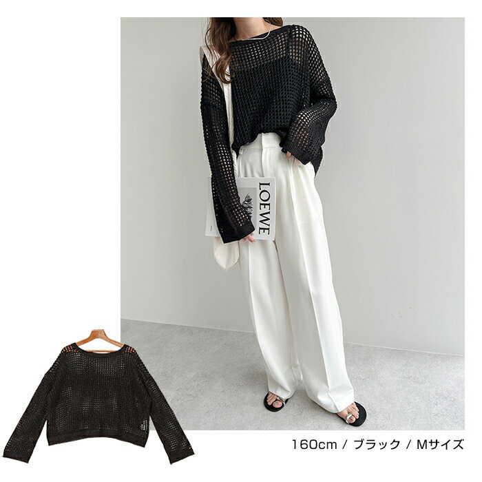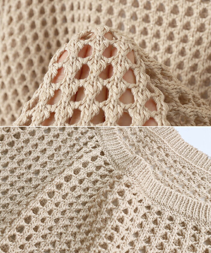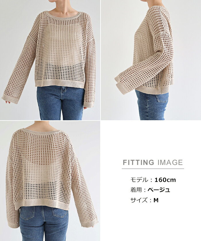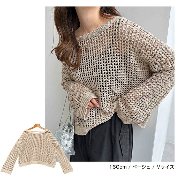【宅配便A】【送料無料】リネンライク メッシュ ニット トップス レディース サマーニット ラメ シアー ドライタッチ オーバーサイズ 長袖 体型カバー 重ね着 レイヤード カジュアル 抜け感 トレンド 春 夏 秋【メール便NG】