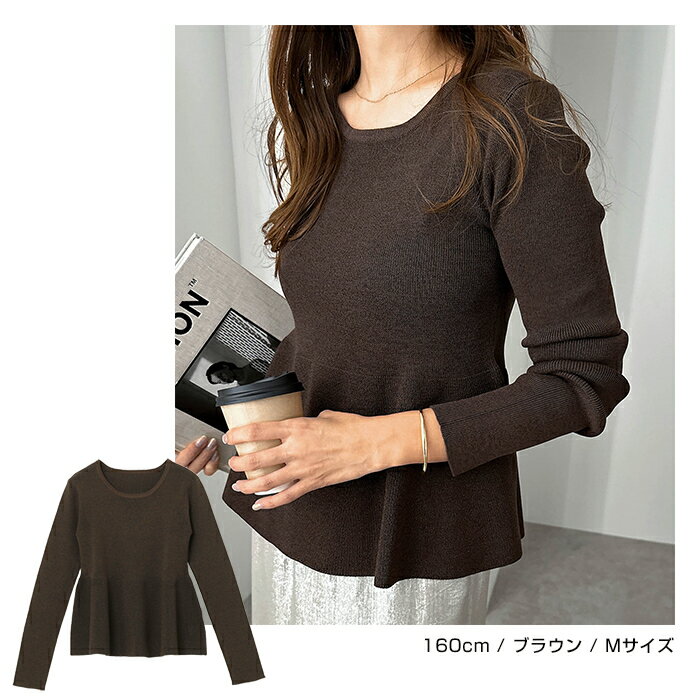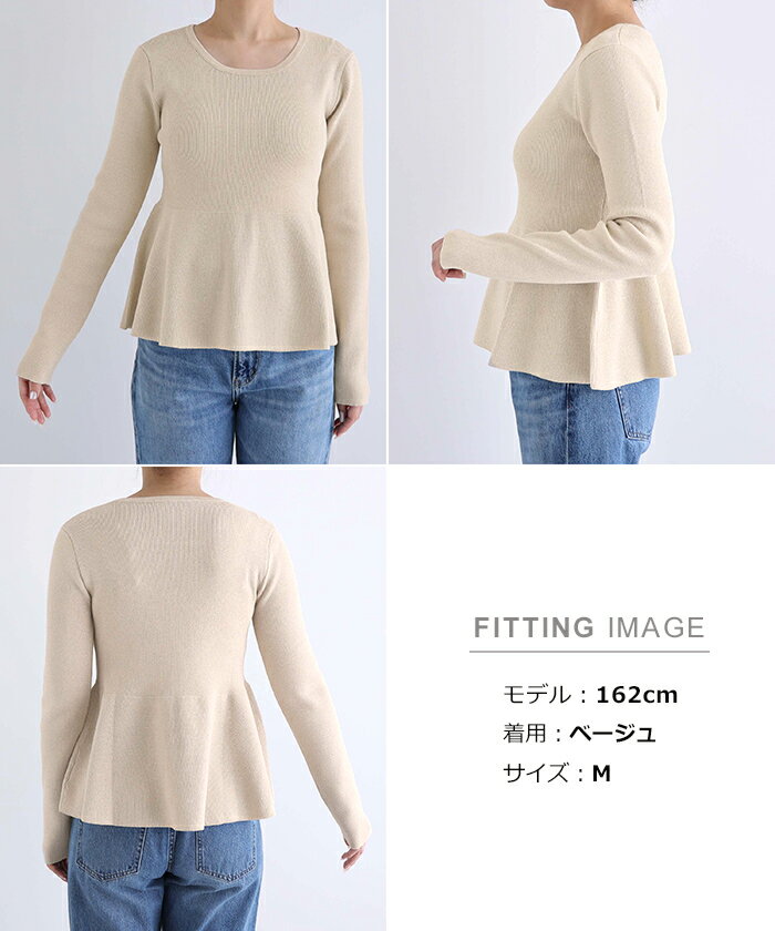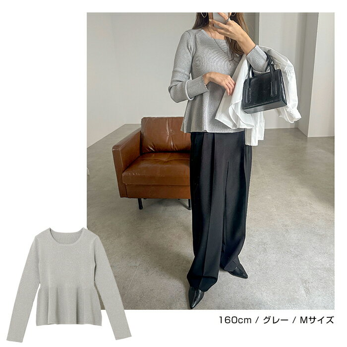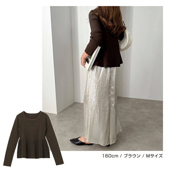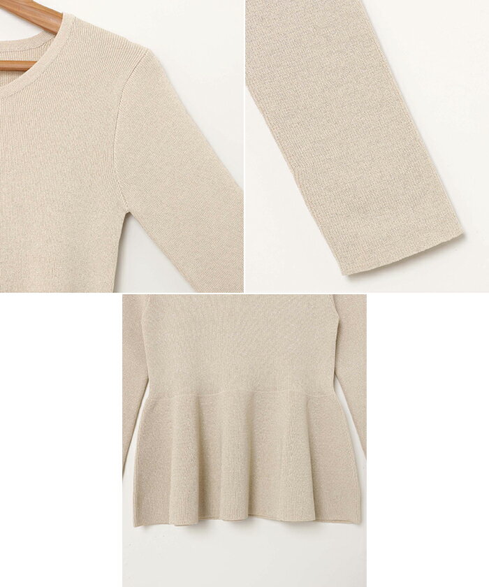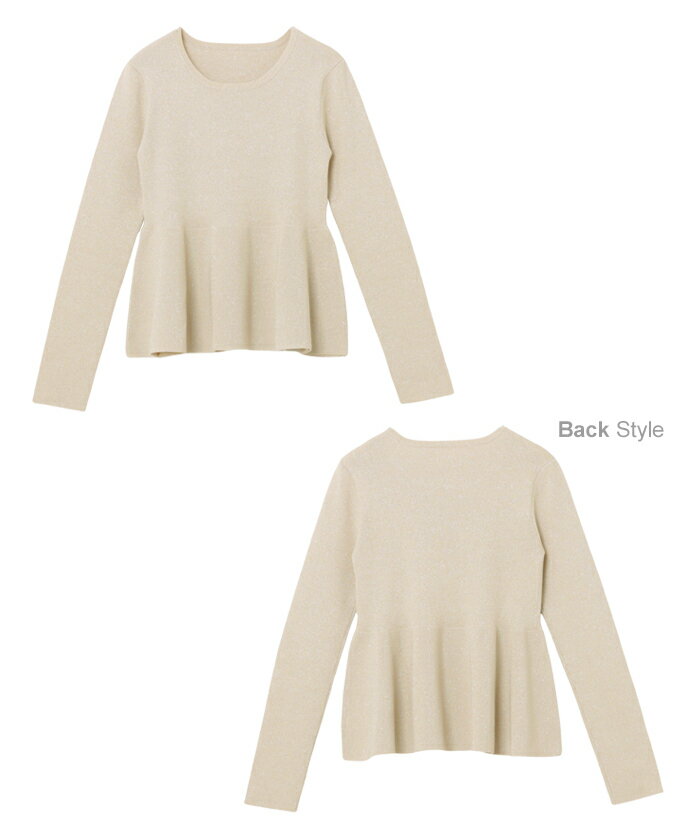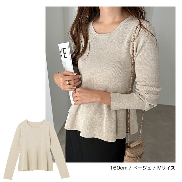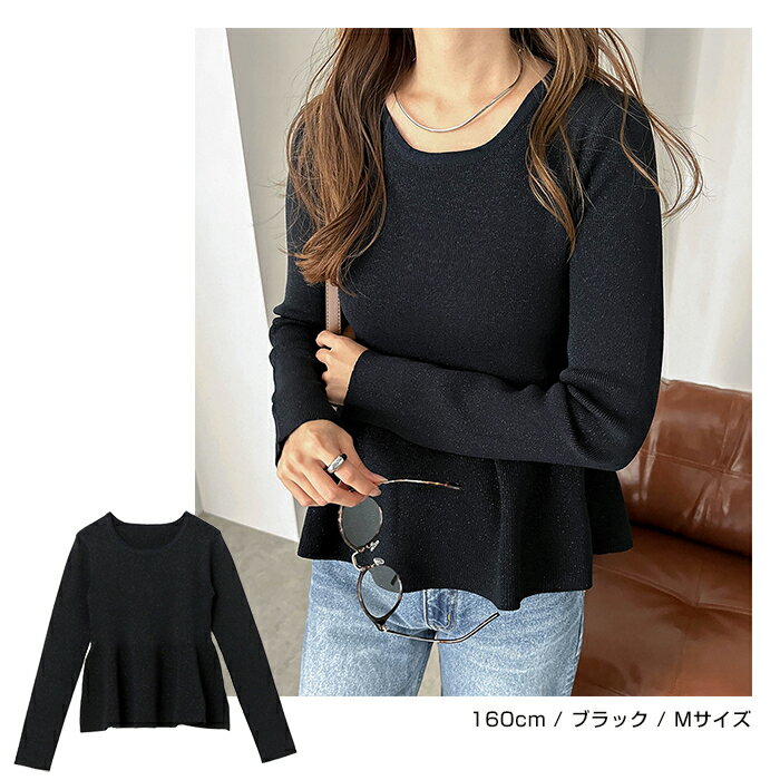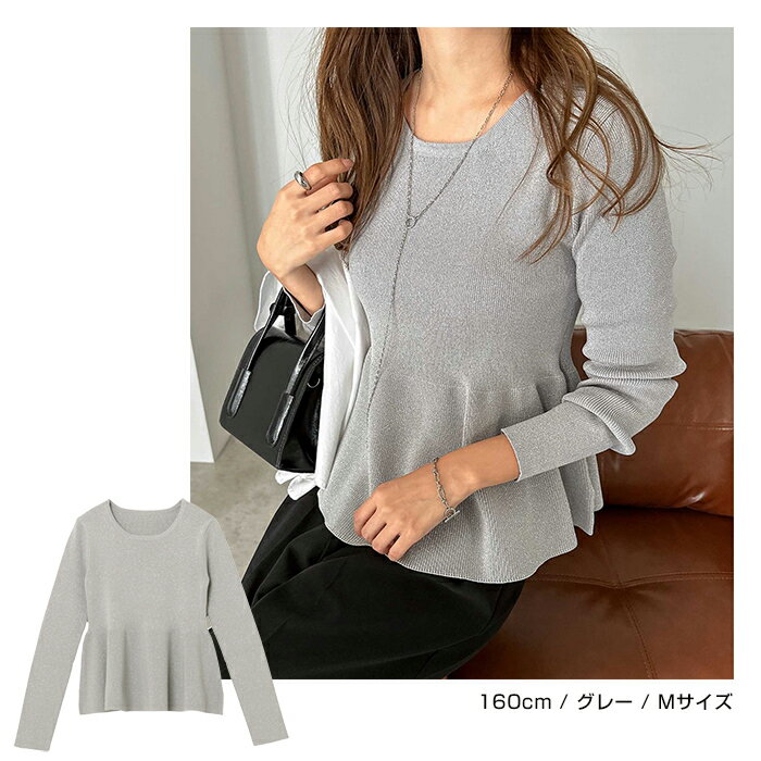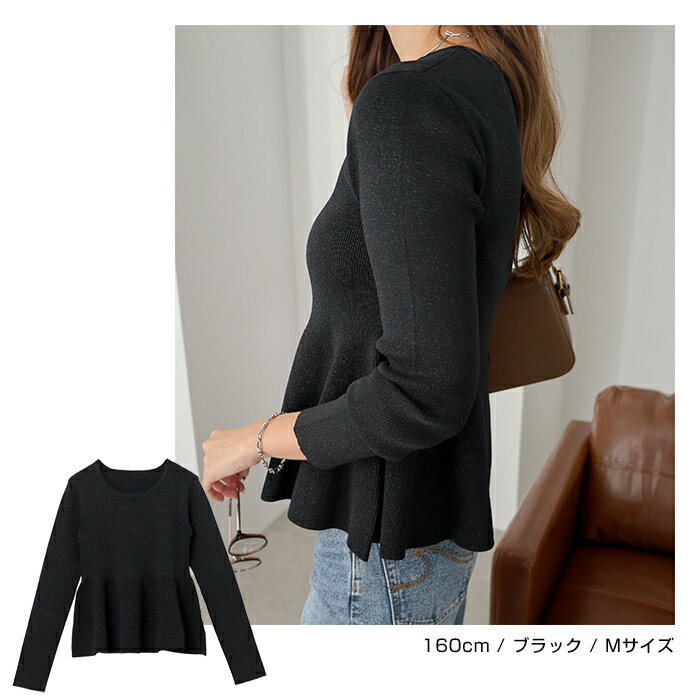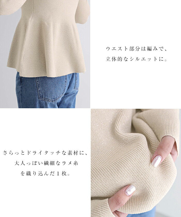 【宅配便A】【送料無料】ペプラム ラメ ニット トップス レディース ニットトップス プルオーバー セーター 長袖 リブ フレア 体型カバー 立体感 ドライタッチ ハイゲージ きれいめ 上品 セレモニー オフィス 秋冬 春 秋 冬【メール便NG】