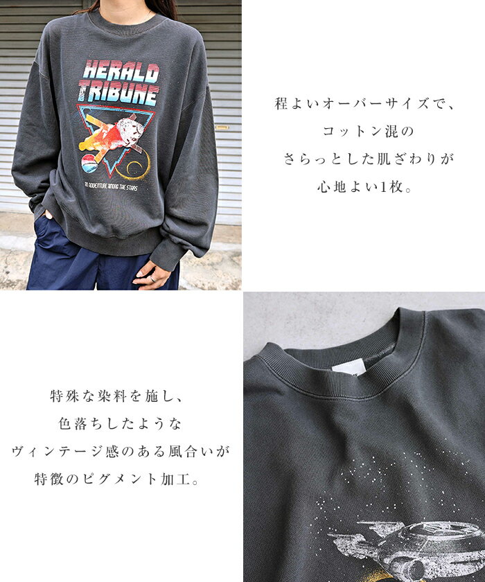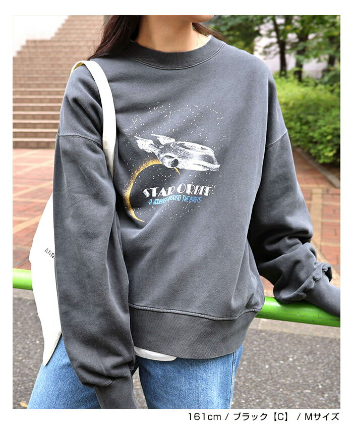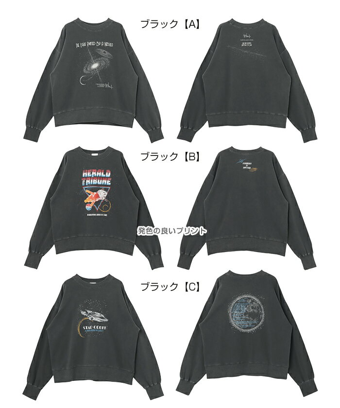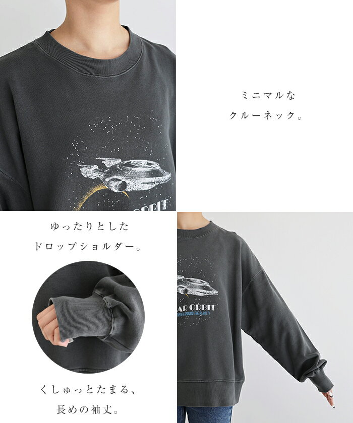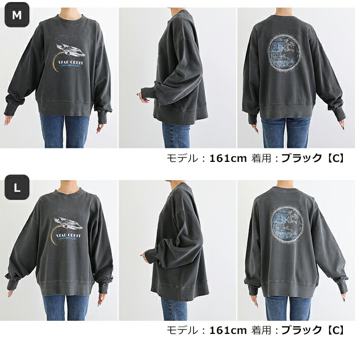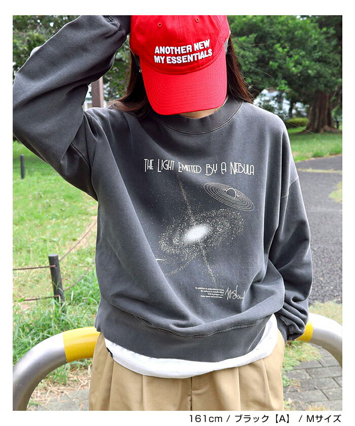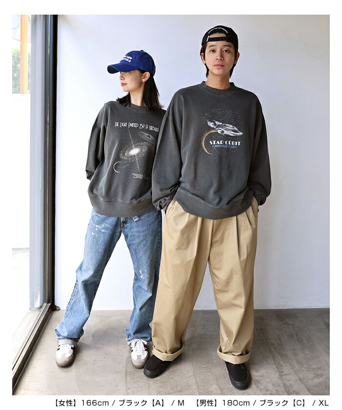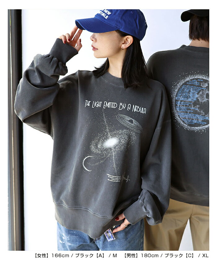 【宅配便A】【一部予約】【送料無料】宇宙プリント 裏毛 スウェット トップス レディース メンズ 男女兼用 ユニセックス ノームコア 長袖 オーバーサイズ 体型カバー ゆったり ピグメント加工 ヴィンテージ感 古着風 M L XL 秋冬 春 秋 冬 ANME アンメ【メール便NG】