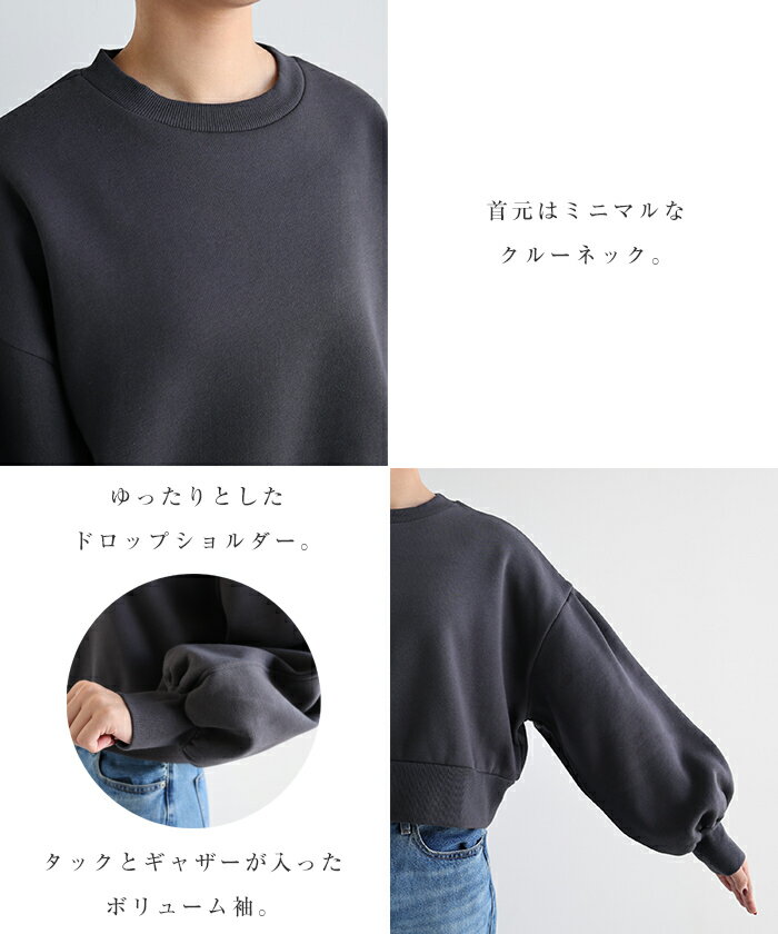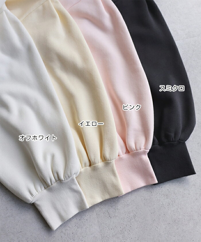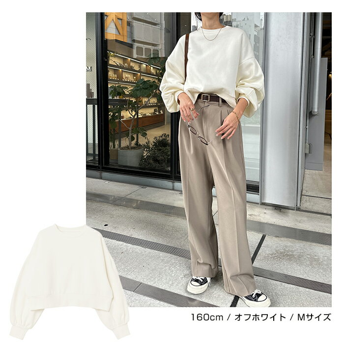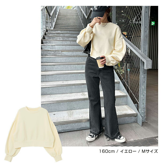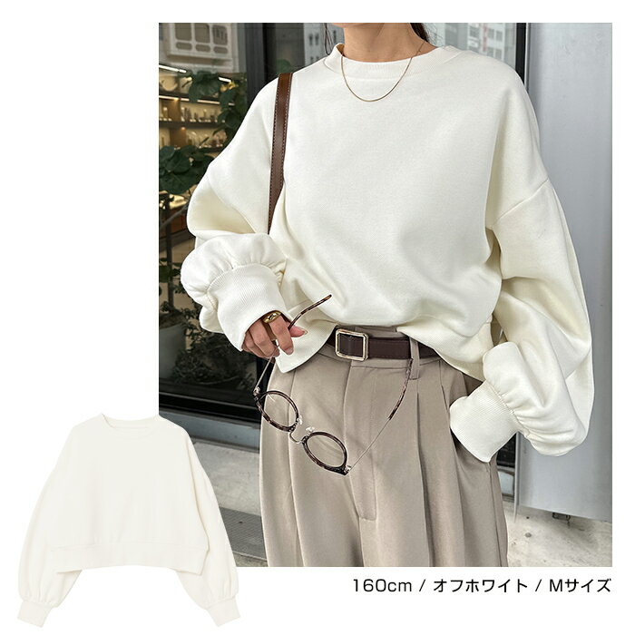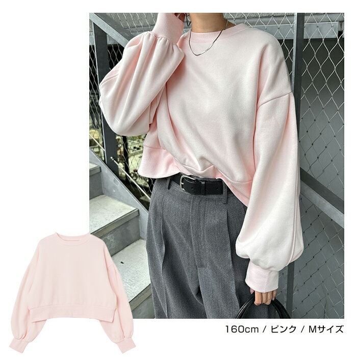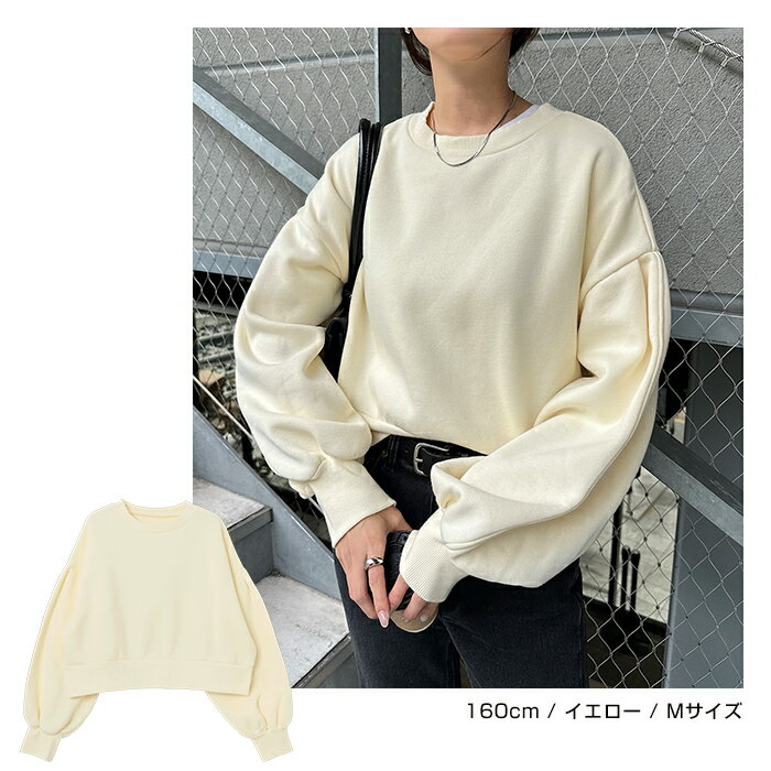 【宅配便A】【送料無料】裏起毛 ショート丈 ボリューム スウェット トップス レディース スウェットトップス トレーナー 長袖 プルオーバー オーバーサイズ 体型カバー ゆったり ボリューム袖 カジュアル トレンド 防寒 暖か 秋冬 春 秋 冬【メール便NG】