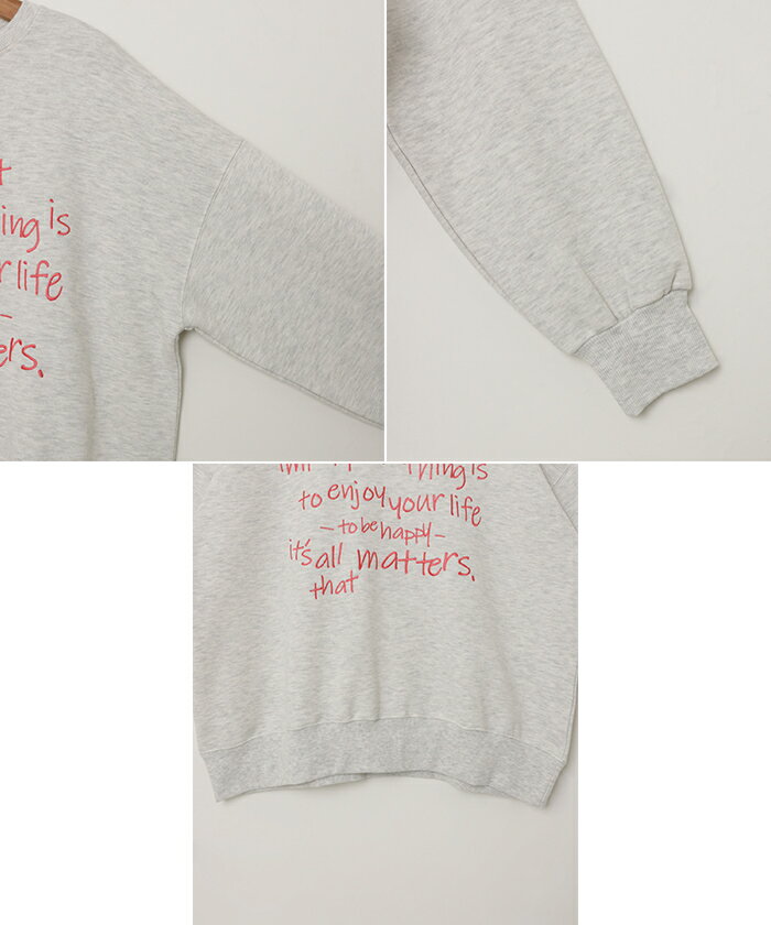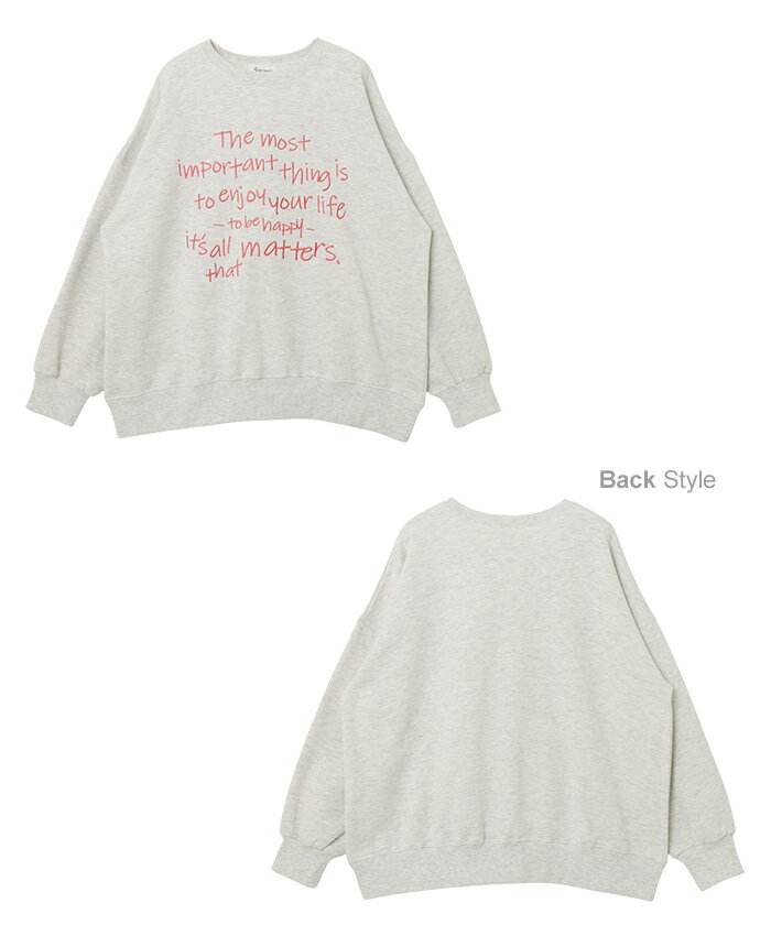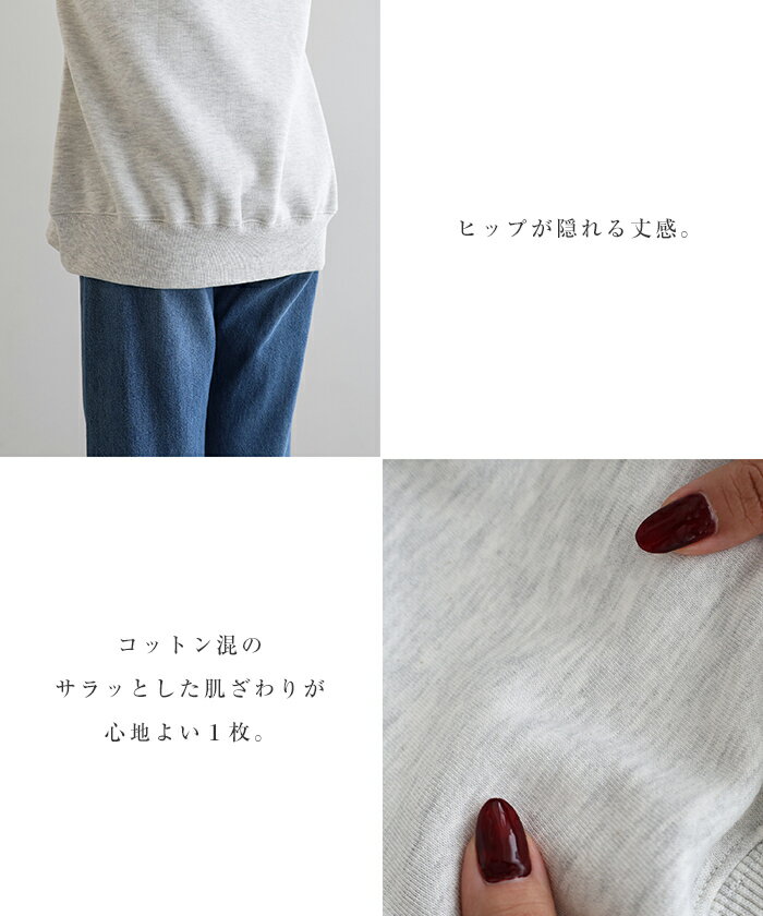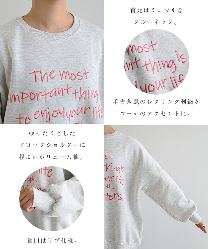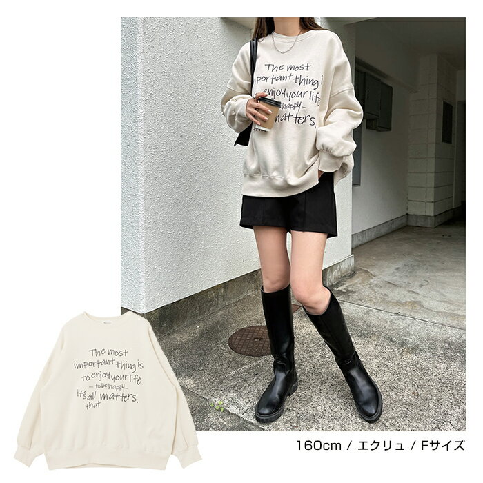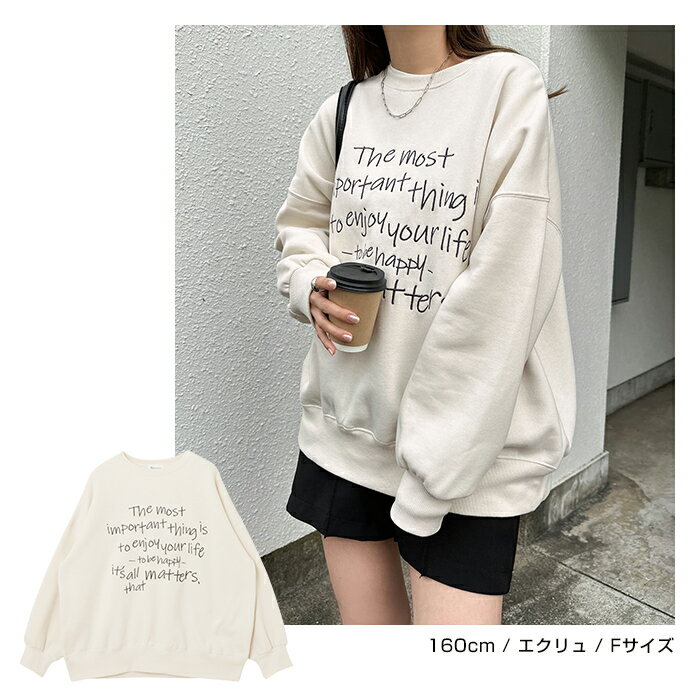 【宅配便A】【一部予約】【送料無料】裏起毛 ロゴ エンブロイダリー スウェット トップス レディース スウェットトップス トレーナー 長袖 プルオーバー オーバーサイズ 体型カバー ゆったり ミドル丈 ロゴ刺繍 カジュアル トレンド 防寒 暖か 秋冬 春 秋 冬【メール便NG】