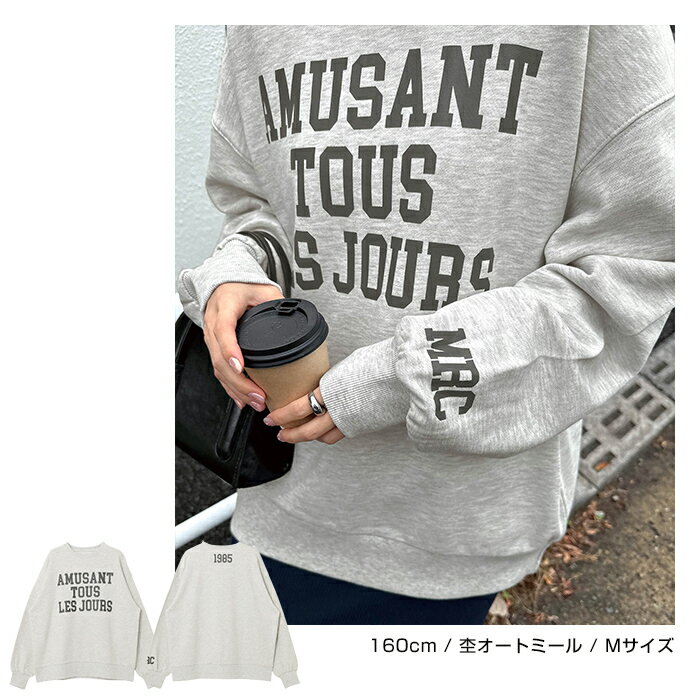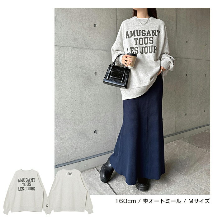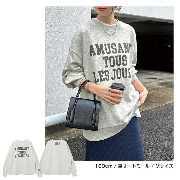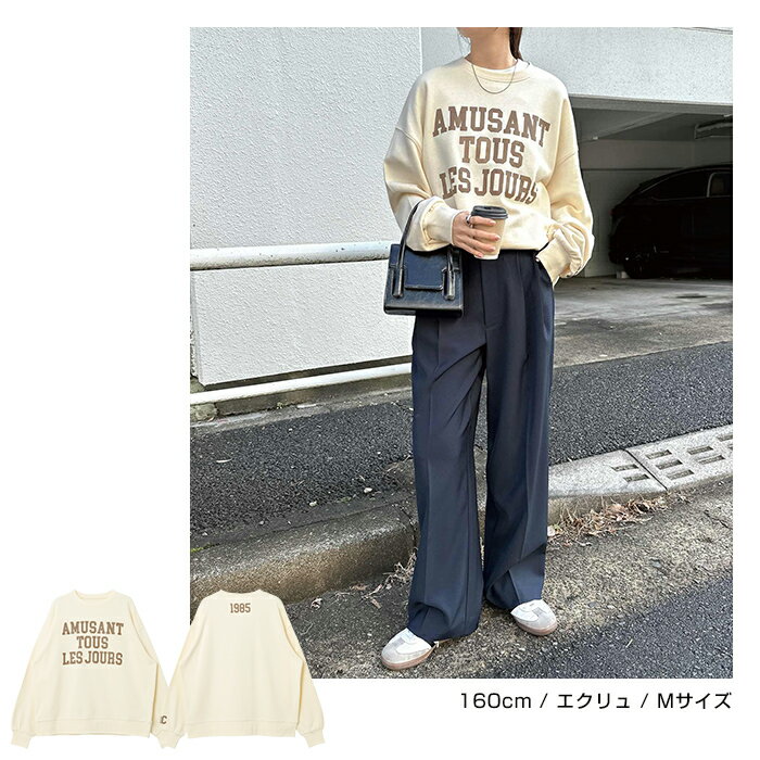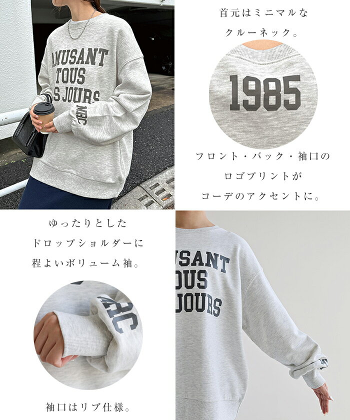 【宅配便A】【送料無料】ロゴ プリント 袖ボリューム 裏毛 スウェット トップス レディース スウェットトップス トレーナー プルオーバー 長袖 オーバーサイズ 体型カバー ゆったり ボリューム袖 コットン 綿 カジュアル トレンド 春夏 秋冬 春 秋 冬【メール便NG】