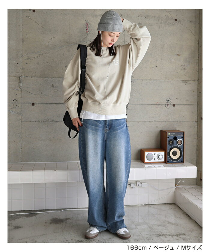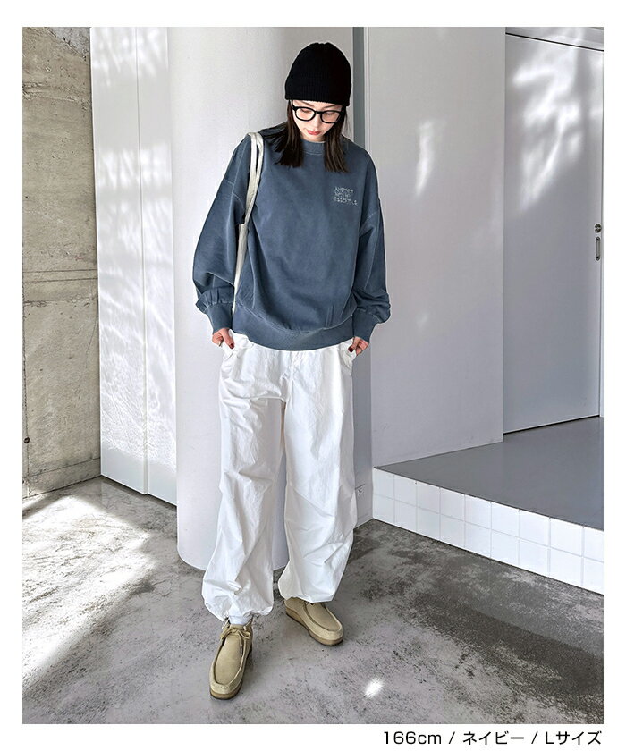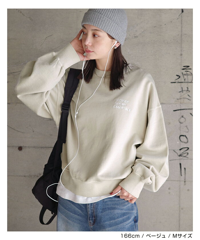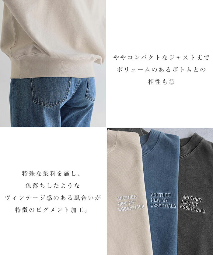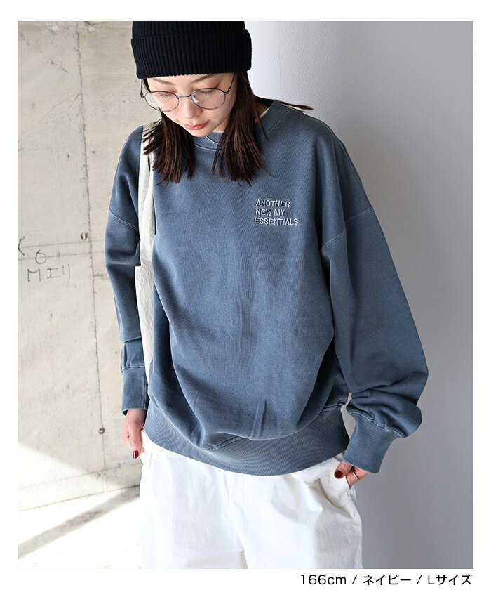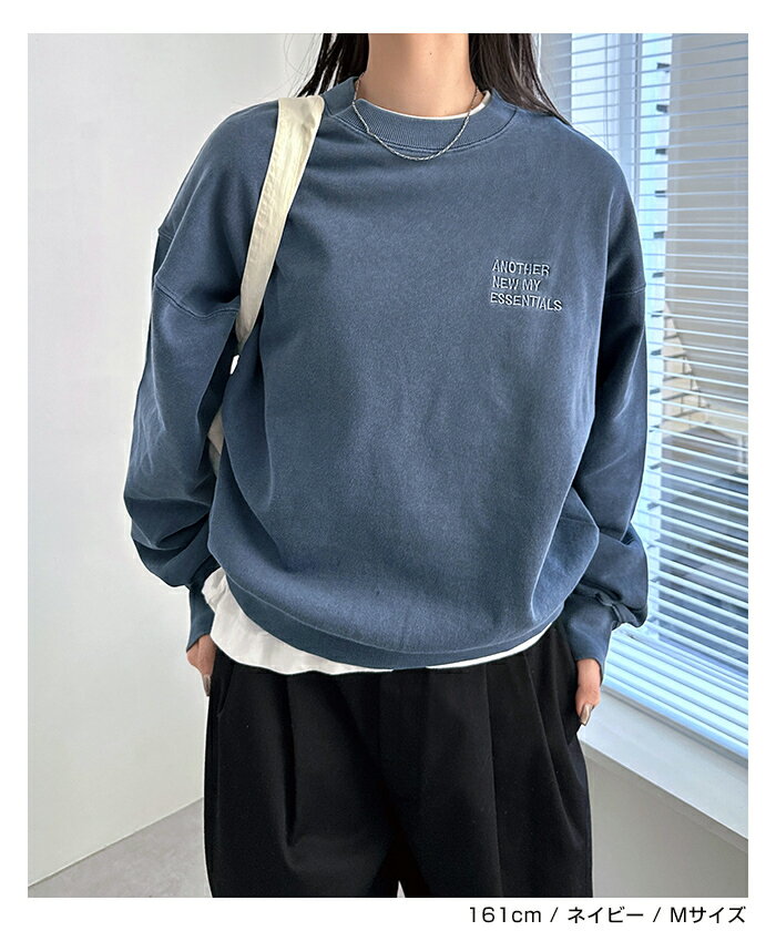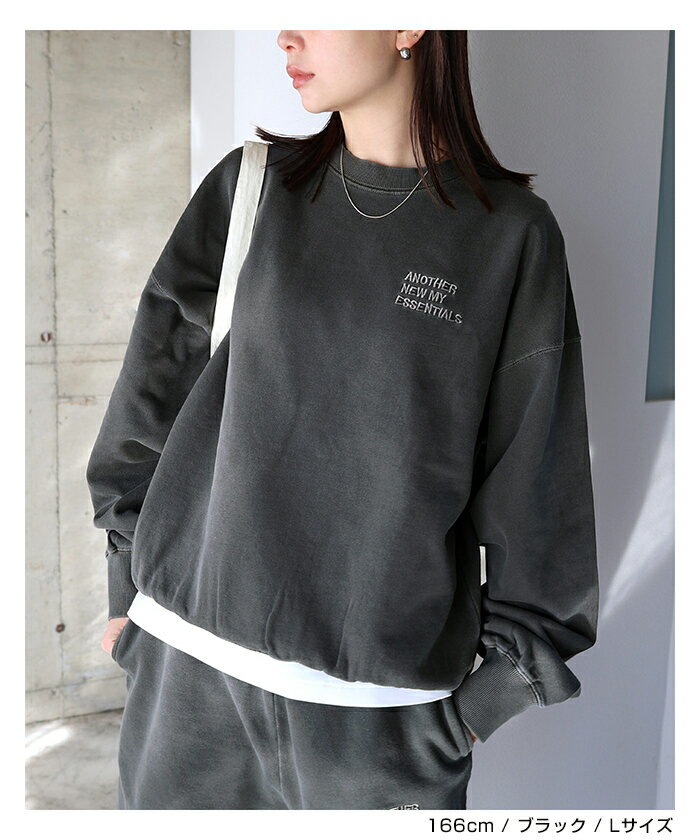 【宅配便A】【送料無料】ピグメント加工 ANME エンブロイダリー ロゴ 裏毛 スウェット トップス レディース メンズ 男女兼用 ユニセックス ノームコア カットソー 長袖 オーバーサイズ 体型カバー 楽ちん セットアップ M L XL 秋冬 春 秋 冬 ANME アンメ【メール便NG】