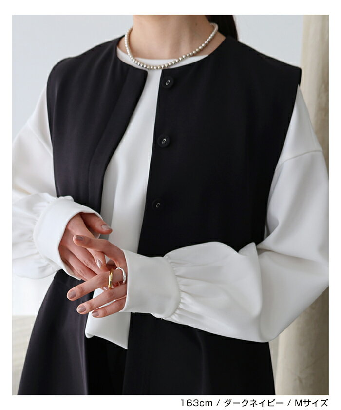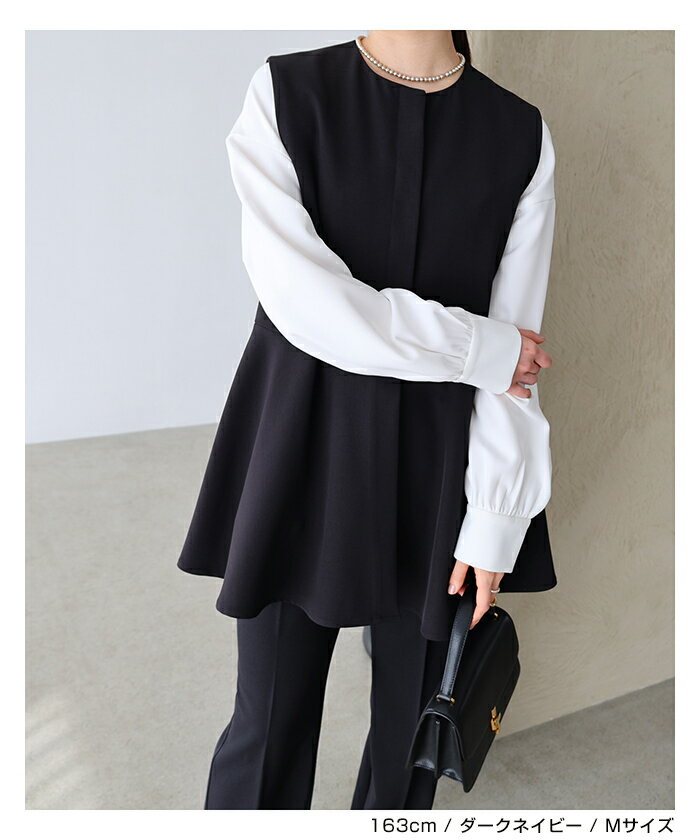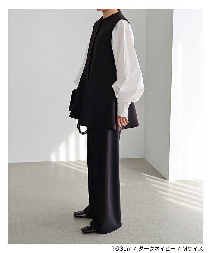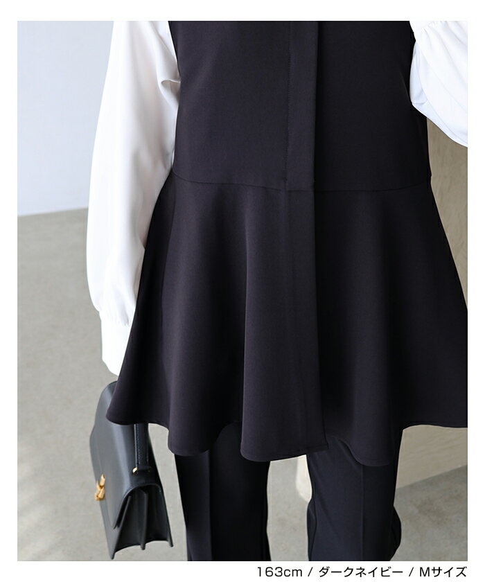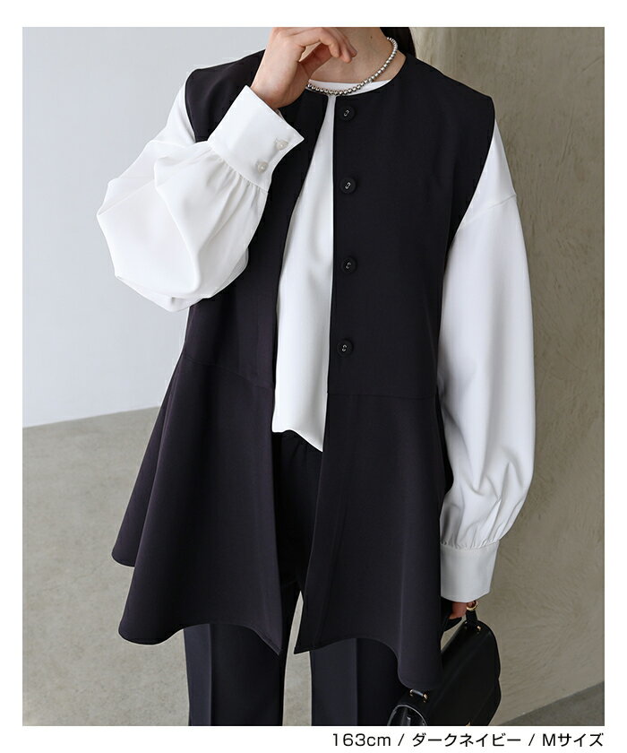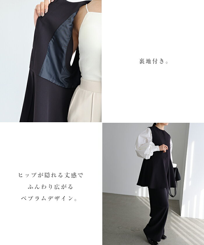 【宅配便A】【一部予約】【送料無料】ペプラム ベスト レディース トップス アウター 羽織り ジレ ジャケット ノーカラー ミドル丈 体型カバー きれいめ 上品 オケージョン セレモニー セットアップ 春夏 秋冬 春 夏 秋 冬 evernavy エバーネイビー【メール便NG】