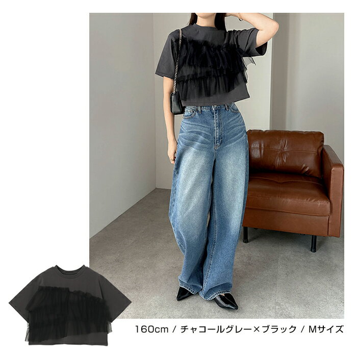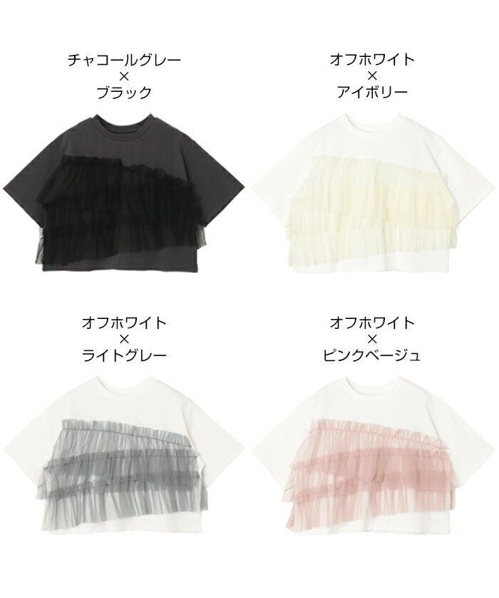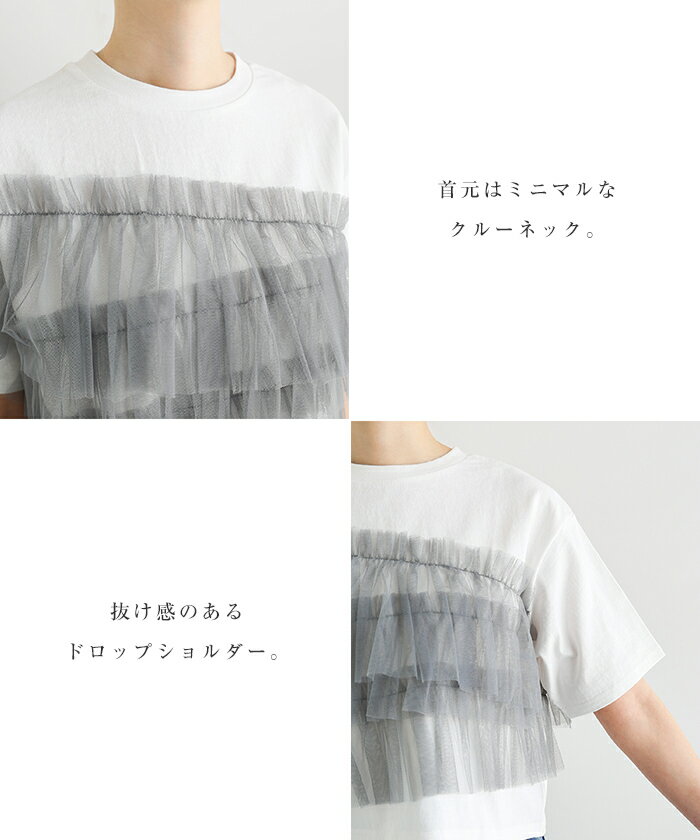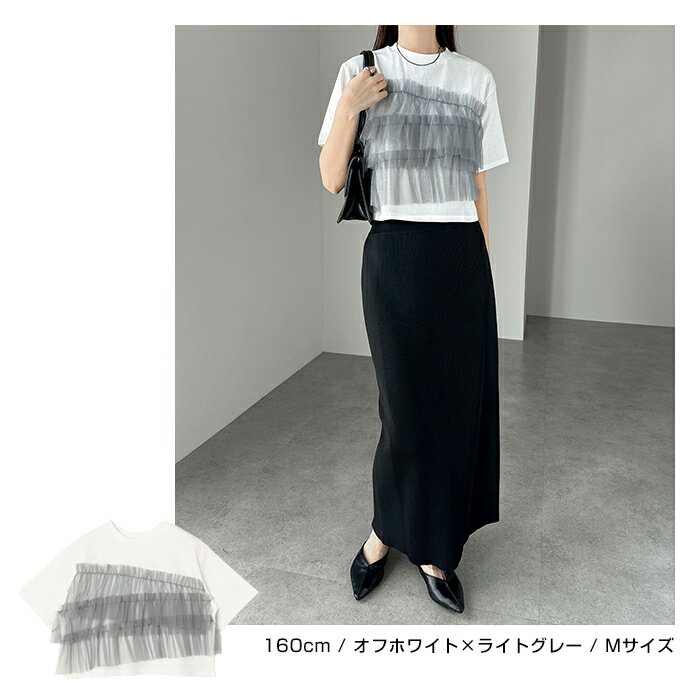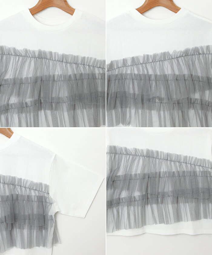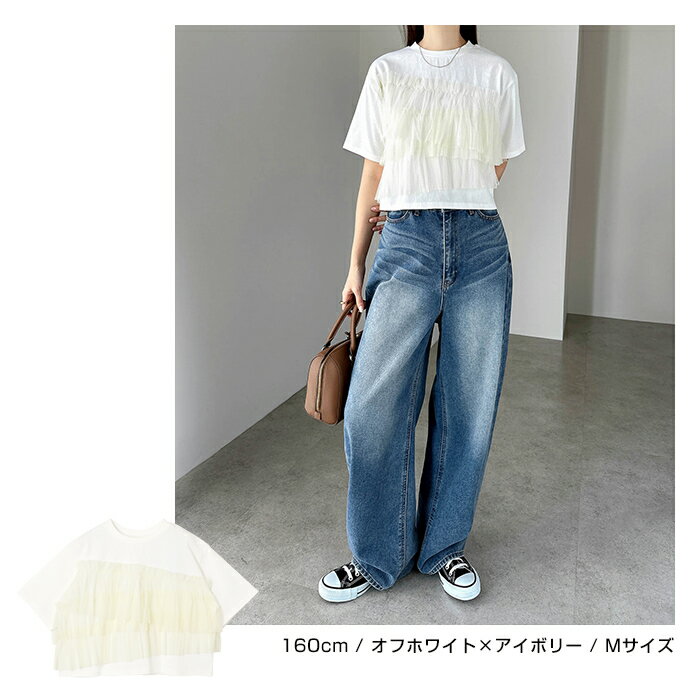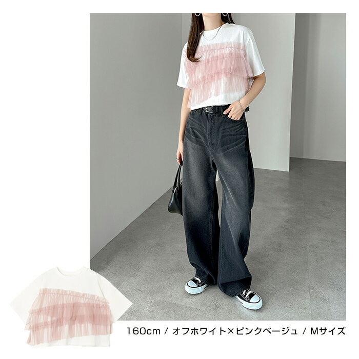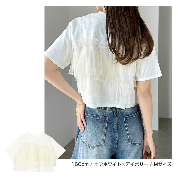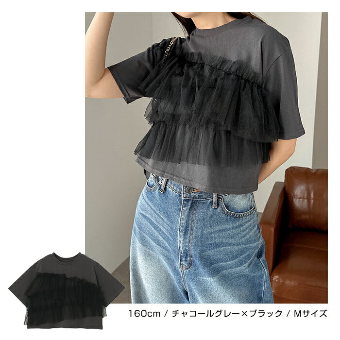 【期間限定★25%OFFクーポン 3/19(水) 17:59まで】【メール便C】フリル チュール ドッキング ビスチェ風 トップス レディース Tシャツ カットソー 半袖トップス 半袖Tシャツ ブラウス ショート丈 体型カバー シアー ギャザー プリーツ レイヤード 重ね着 春夏 春 夏 秋