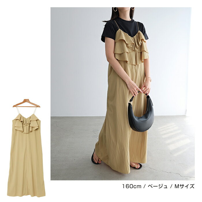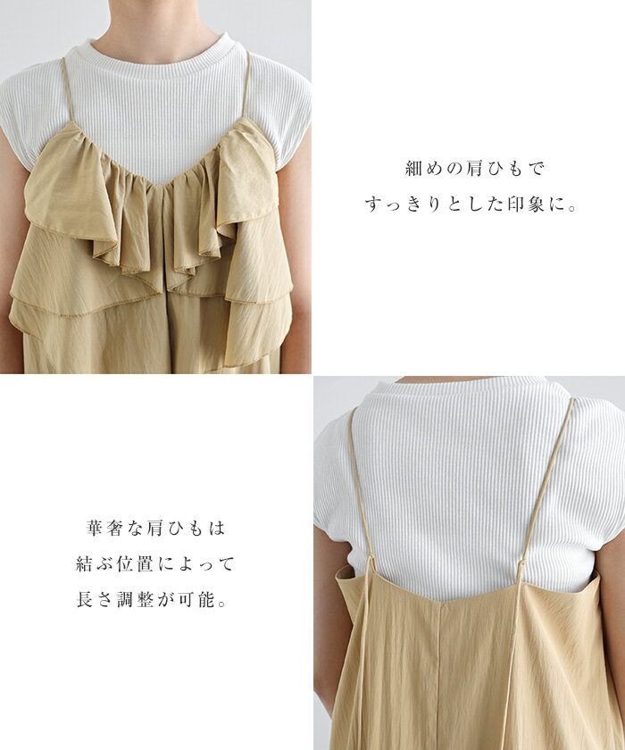 【宅配便A】【送料無料】ランダム フリル ロング キャミ ワンピース レディース キャミワンピ キャミソール マキシワンピース ロング丈 体型カバー 楽ちん Iライン タフタ フェミニン トレンド リラックス 春夏 秋冬 春 夏 秋 冬【メール便NG】