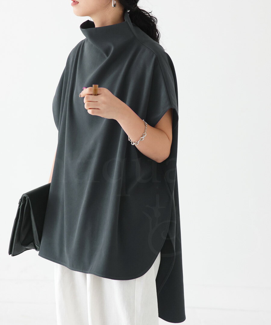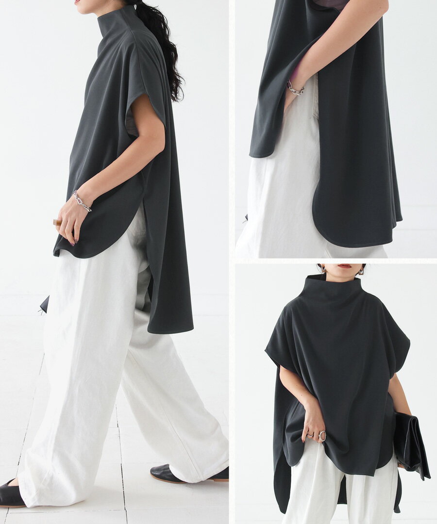 同じ感じのアンティカさんの、多分綿100の少しハイネックのブラックの半袖がすごく良かったのだけれど、毎日着てたら色あせてきてしまったので、同じデザインだったので、購入してみました。